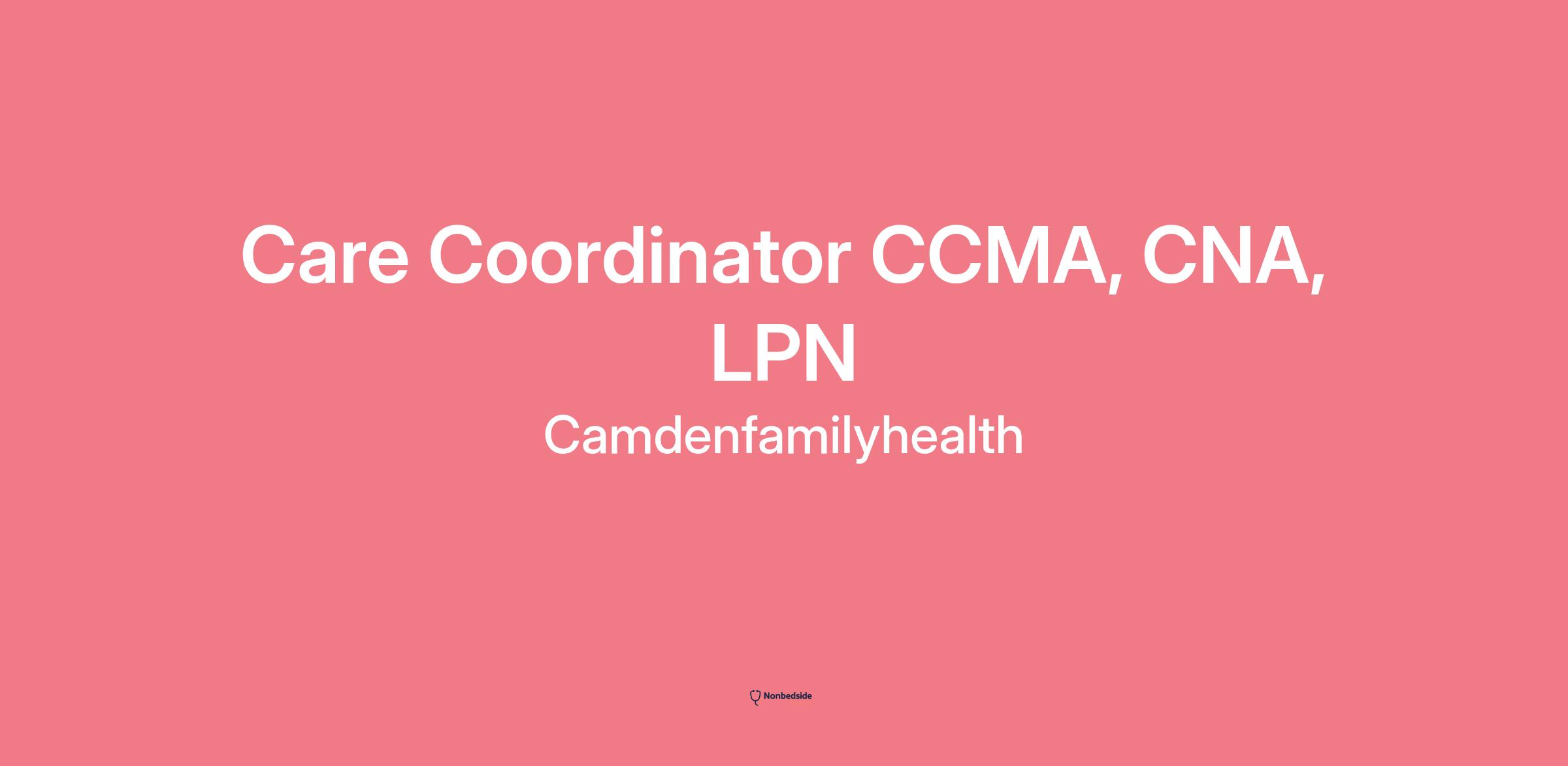 Job Description: Camden Family Health is currently accepting applications for a Full Time Care Coordinator at our Summersville location. The Care Coordinator will be responsible for coordinating patient care and services, ensuring that patients receive the appropriate care and resources to meet their healthcare needs. The Care Coordinator will work closely with healthcare providers and patients to schedule follow-up visits from hospital discharges and emergency room visits, and follow up with patients to ensure quality care is maintained for client outcomes.