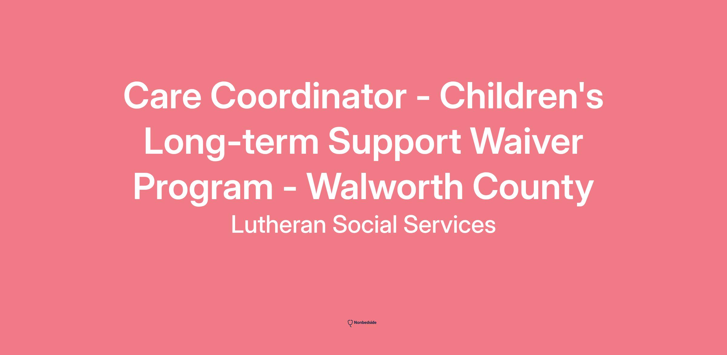 Lutheran Social Services of WI and Upper MI is currently seeking a Care Coordinator to join our Walworth County team!