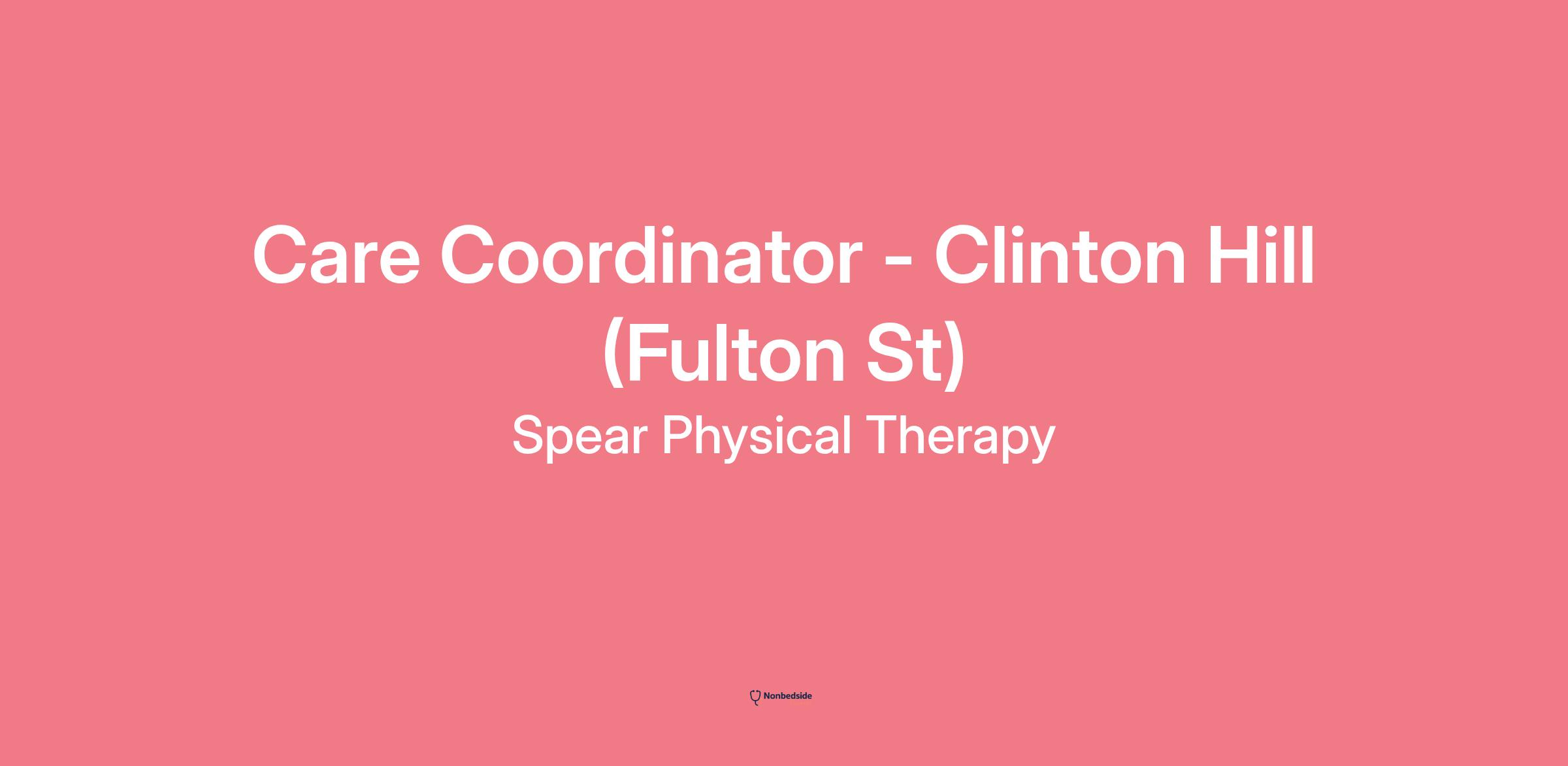 Overview Spear Physical and Occupational Therapy is seeking a qualified, passionate Care Coordinator to join the team at our Clinton Hill- Fulton St. clinic in Brooklyn.
