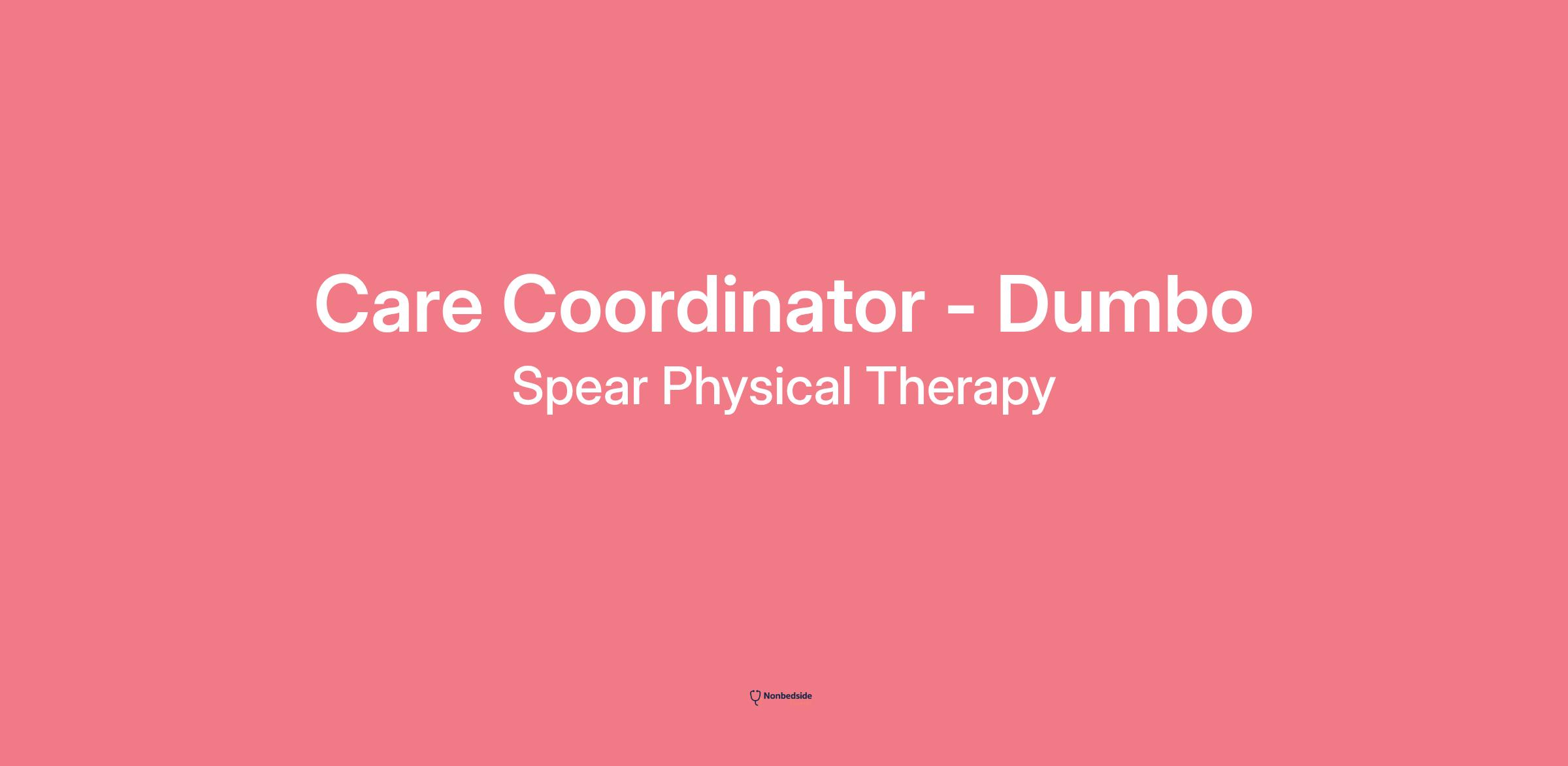 Overview Spear Physical and Occupational Therapy is seeking a qualified, passionate Care Coordinator to join the team at our clinic in Dumbo. Care Coordinators are responsible for supporting patient care by making patients feel welcomed and valued while also helping manage the flow of appointments.