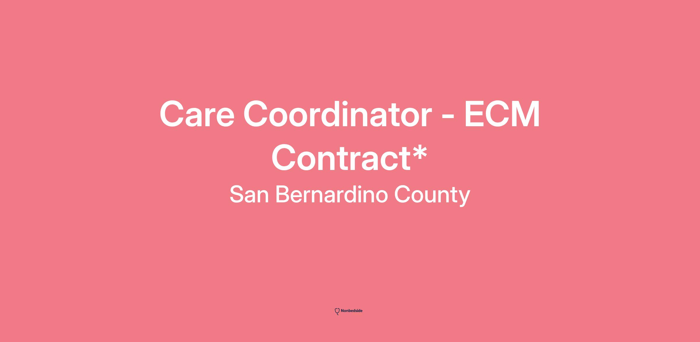 San Bernardino County is recruiting for a Care Coordinator assigned to the Enhanced Care Management (ECM) program. Incumbents in this role will identify patients coming in for routine or specialty visits that are eligible to be assigned an ECM member for enhanced patient-to-provider engagement.