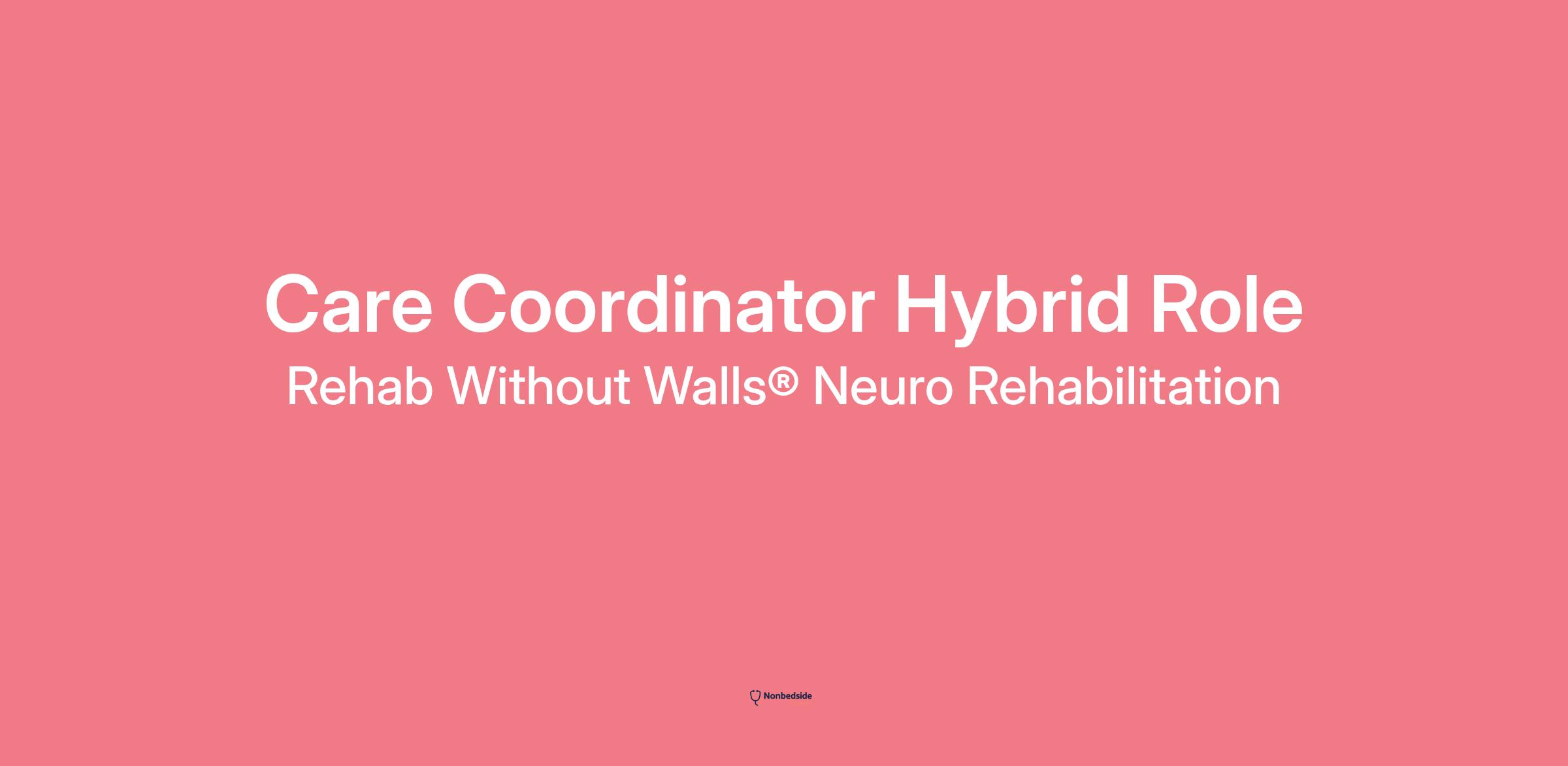 Join to apply for the Care Coordinator Hybrid Role at Rehab Without Walls Neuro Rehabilitation .
