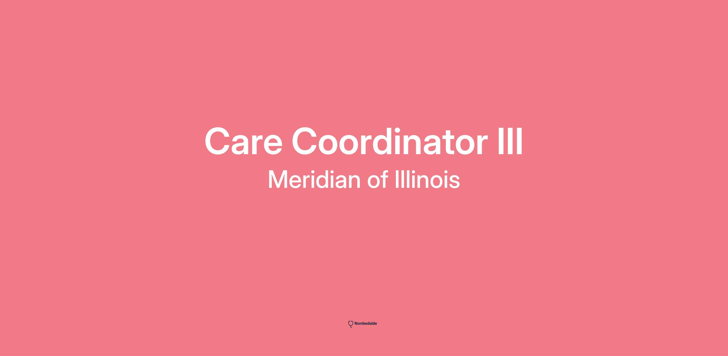 Join to apply for the Care Coordinator III role at Meridian of Illinois .