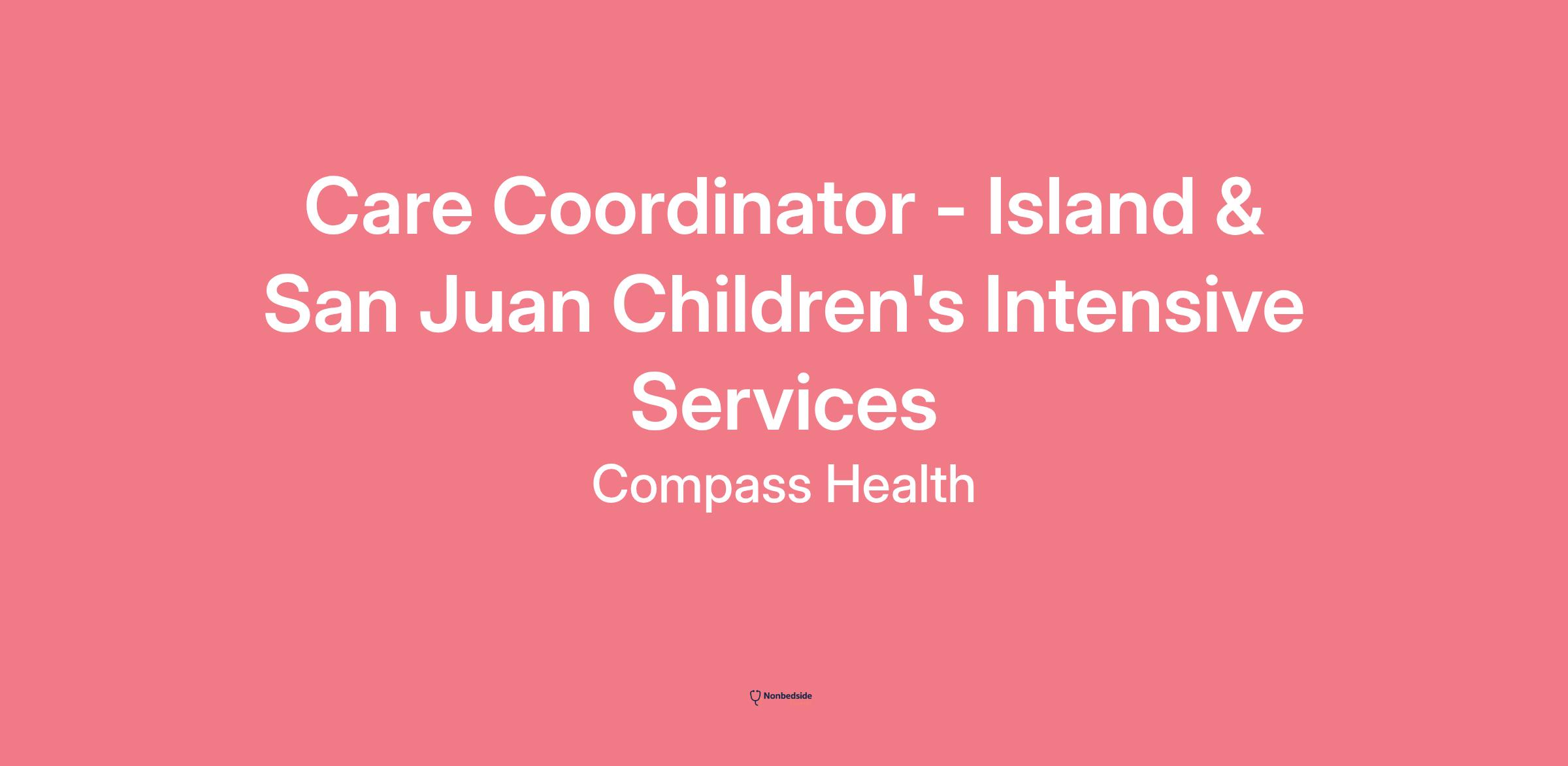 Join Compass HealthAre you passionate about empowering youth and families in your community? Our Island & San Juan WISe team is seeking a dedicated Care Coordinator to provide strength-based, wraparound care to children and young adults experiencing behavioral health challenges.