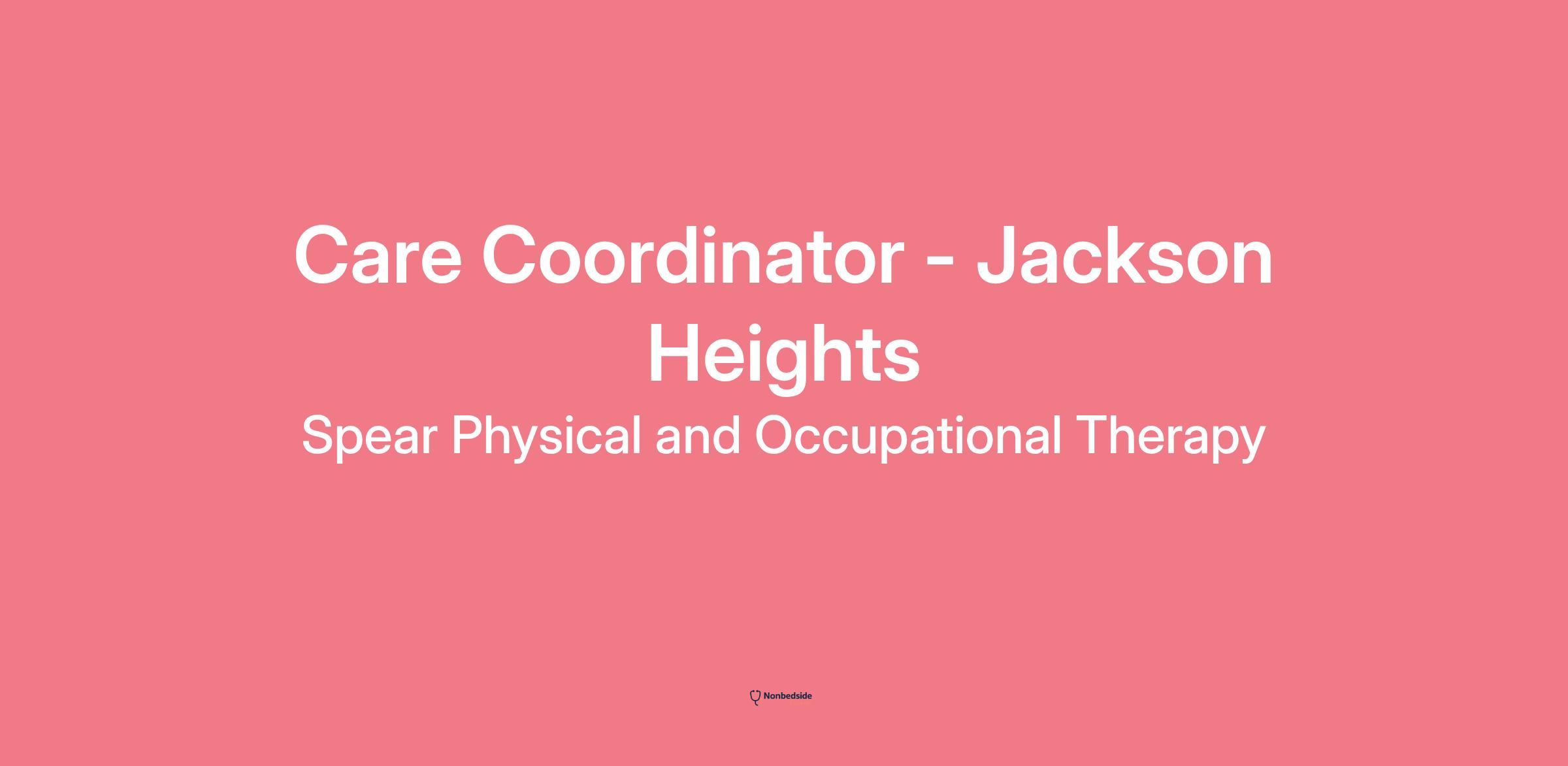 Spear Physical and Occupational Therapy is seeking a qualified, passionate Care Coordinator to join the team at our Jackson Heights location in Queens, NY. Care Coordinators are responsible for supporting patient care by making our patients feel welcomed and valued whilst also controlling the flow of the appointment. Care Coordinators are expected to respond to all phone calls and emails within 2 hours and always within 24 hours. Care Coordinators will guide our patients through our out-of-network experience and greet all patients who enter the clinic with a smile. Care Coordinators are expected to execute 5-star customer service. Spear strives to foster a true community environment for both patients and team members; therefore, a collaborative spirit is valued to ensure everyone receives the care and support they need.