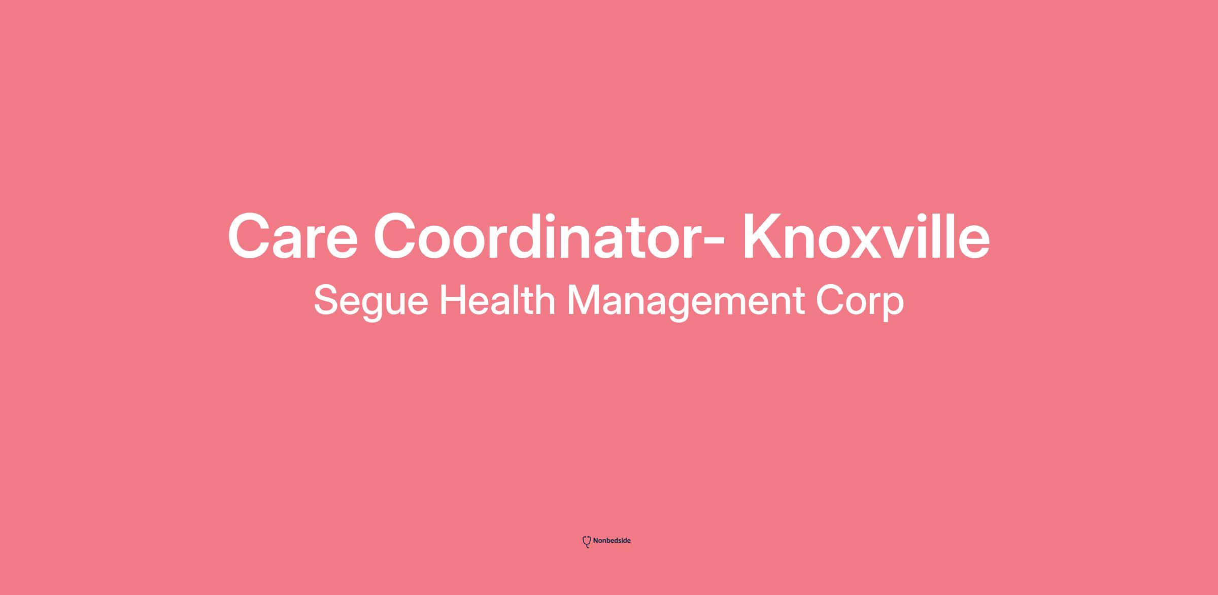 Segue Health, a faith based medical practice, is looking for a Care Coordinator to work in a Knoxville, TN area hospital coordinating post discharge transitional care management. This position requires a mix of clinical knowledge, excellent organizational skills, and excellent communication skills.