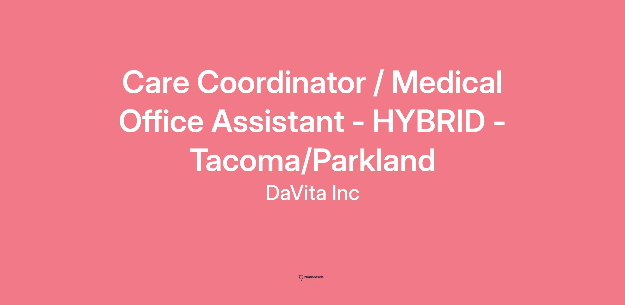 Location: Commute to multiple Davita Clinics and partner practices in Tacoma/Parkland/Olympia and surrounding metro areas.