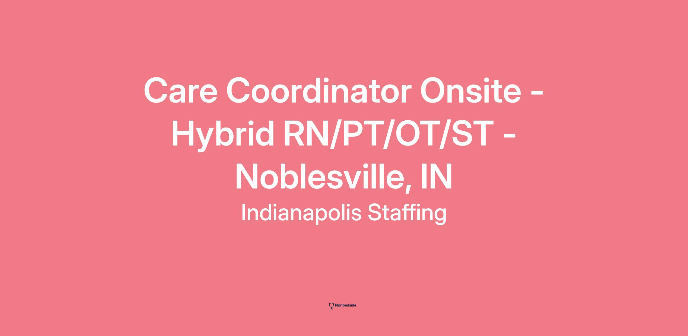Active, unrestricted registered clinical license required in state of hire - Registered Nurse, Physical Therapist, Occupational Therapist, or Speech Language Pathologist. 5+ years of clinical experience. Candidate hired will support specific location(s) for on-site facility needs within 30-mile maximum radius of home location based on manager discretion. Reside within or near Noblesville, IN. Driver's License and access to a reliable transportation.