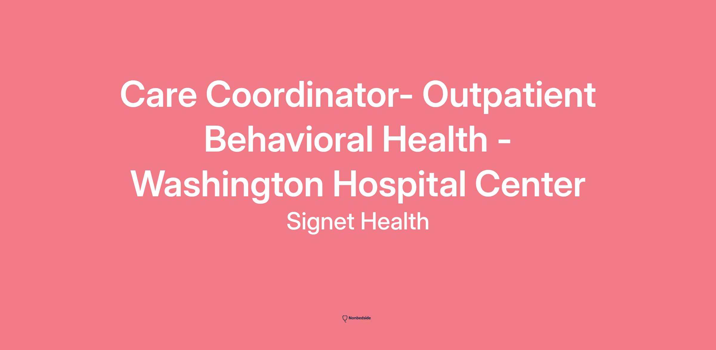Care Coordinator- Outpatient Behavioral Health - Washington Hospital Center Join to apply for the Care Coordinator- Outpatient Behavioral Health - Washington Hospital Center role at Signet Health