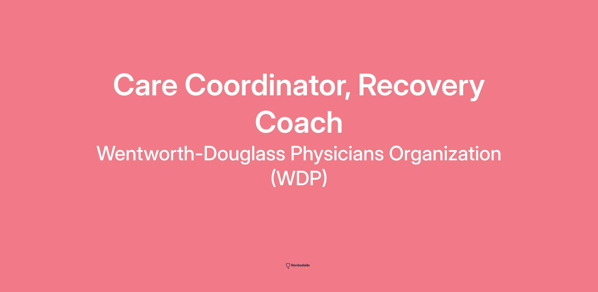We are seeking a full-time, 40-hour care coordinator/recovery coach to work onsite Monday through Friday from 8:00am to 5:00pm.