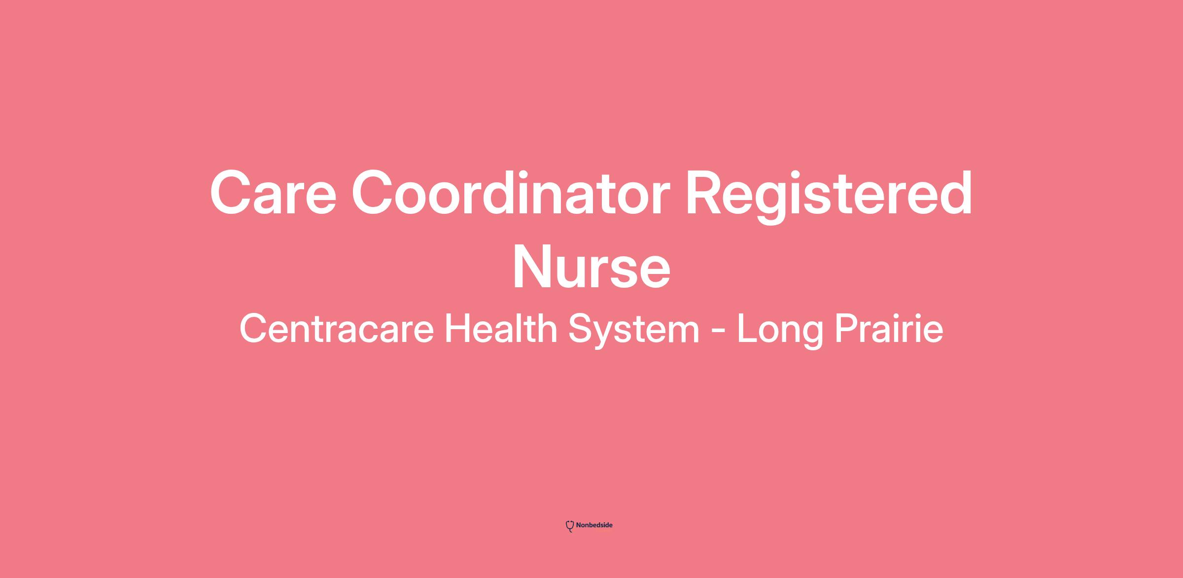 Qualifications: Graduate of an accredited school of nursing Current licensure as a Registered Nurse in the State of MN Current American Heart Association (AHA) BLS Healthcare Provider card Experience with the diversity of the local community preferred Previous experience with care coordination preferred CentraCare has made a commitment to diversity in its workforce. All individuals including, but not limited to, individuals with disabilities, are encouraged to apply. CentraCare is an EEO/AA employer.