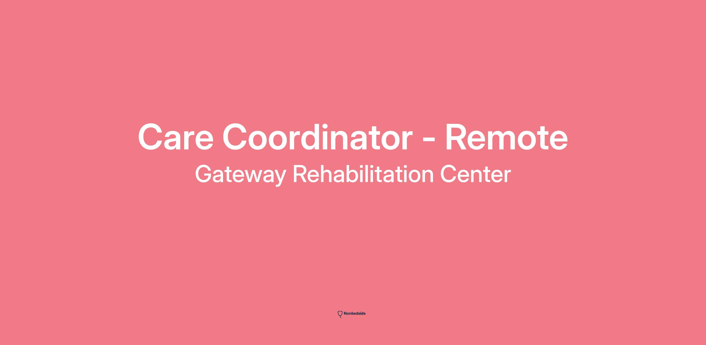 Gateway Rehab Center (GRC) has an outstanding opportunity for a Care Coordinator! THIS IS A MOBILE POSITION! Starting pay is $19/Hour!