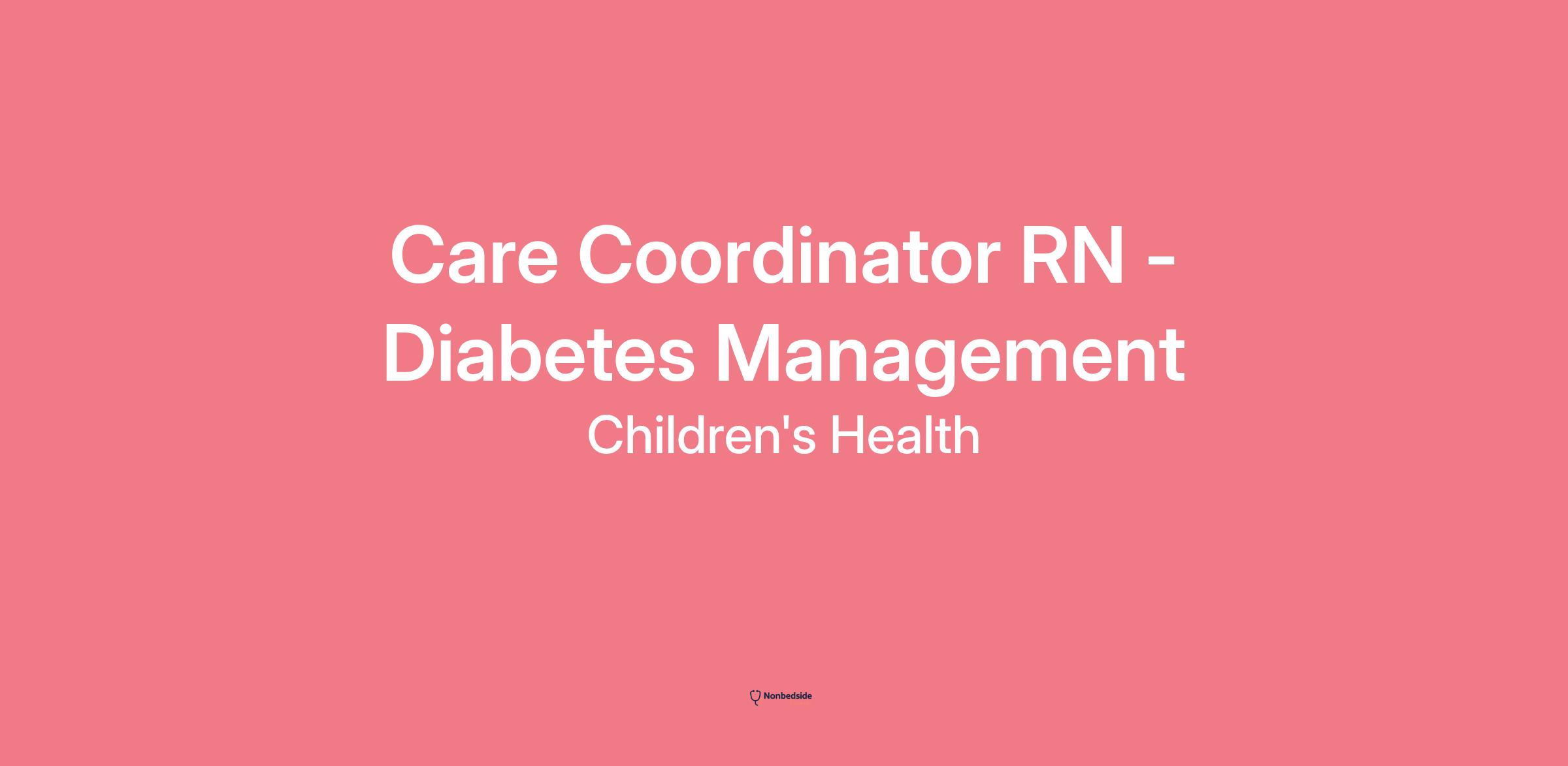Overview Care Coordinator RN - Diabetes Management at Children's Health