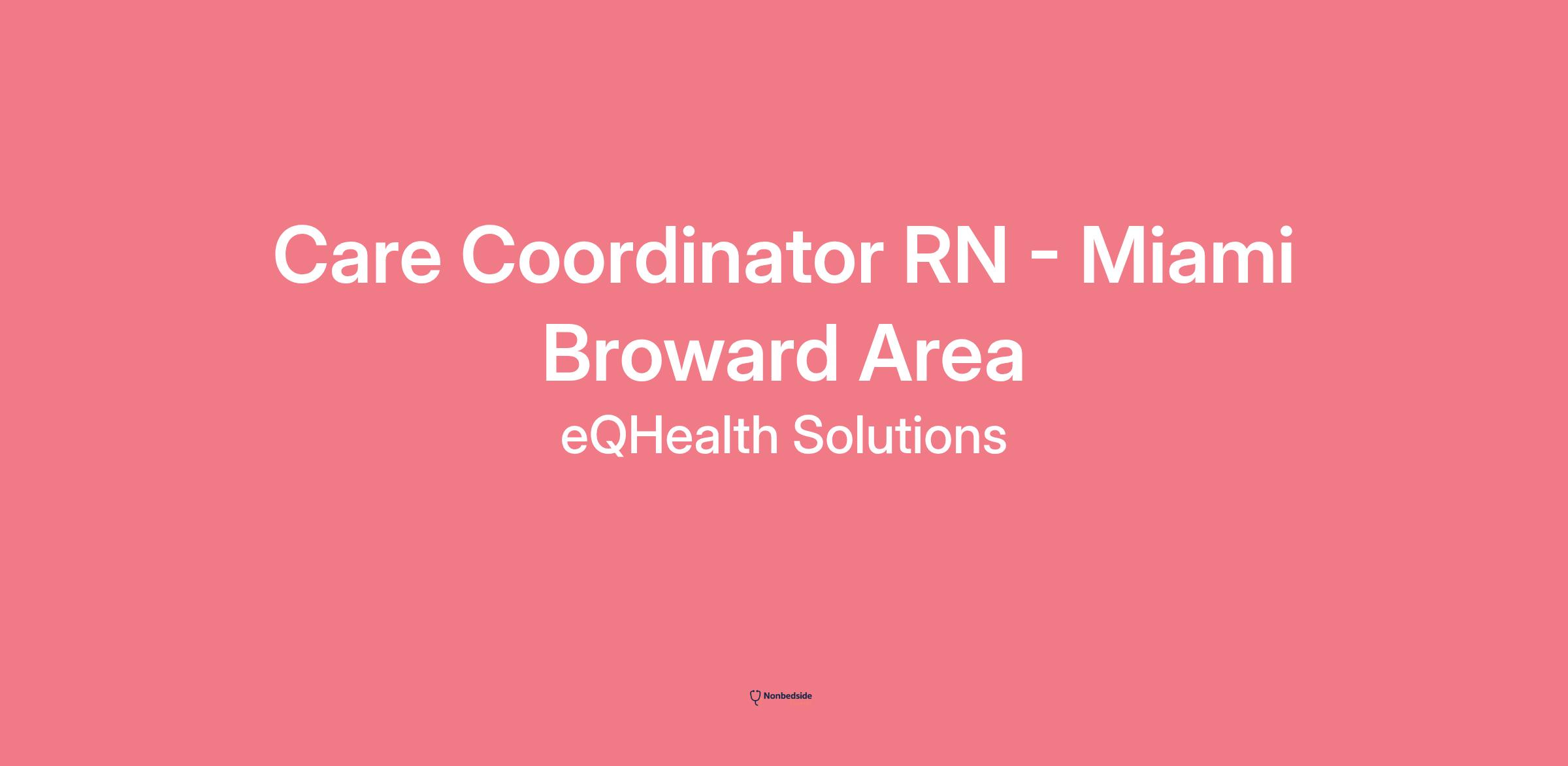 Care Coordinator RN - Miami Broward Area Join to apply for the Care Coordinator RN - Miami Broward Area role at eQHealth Solutions