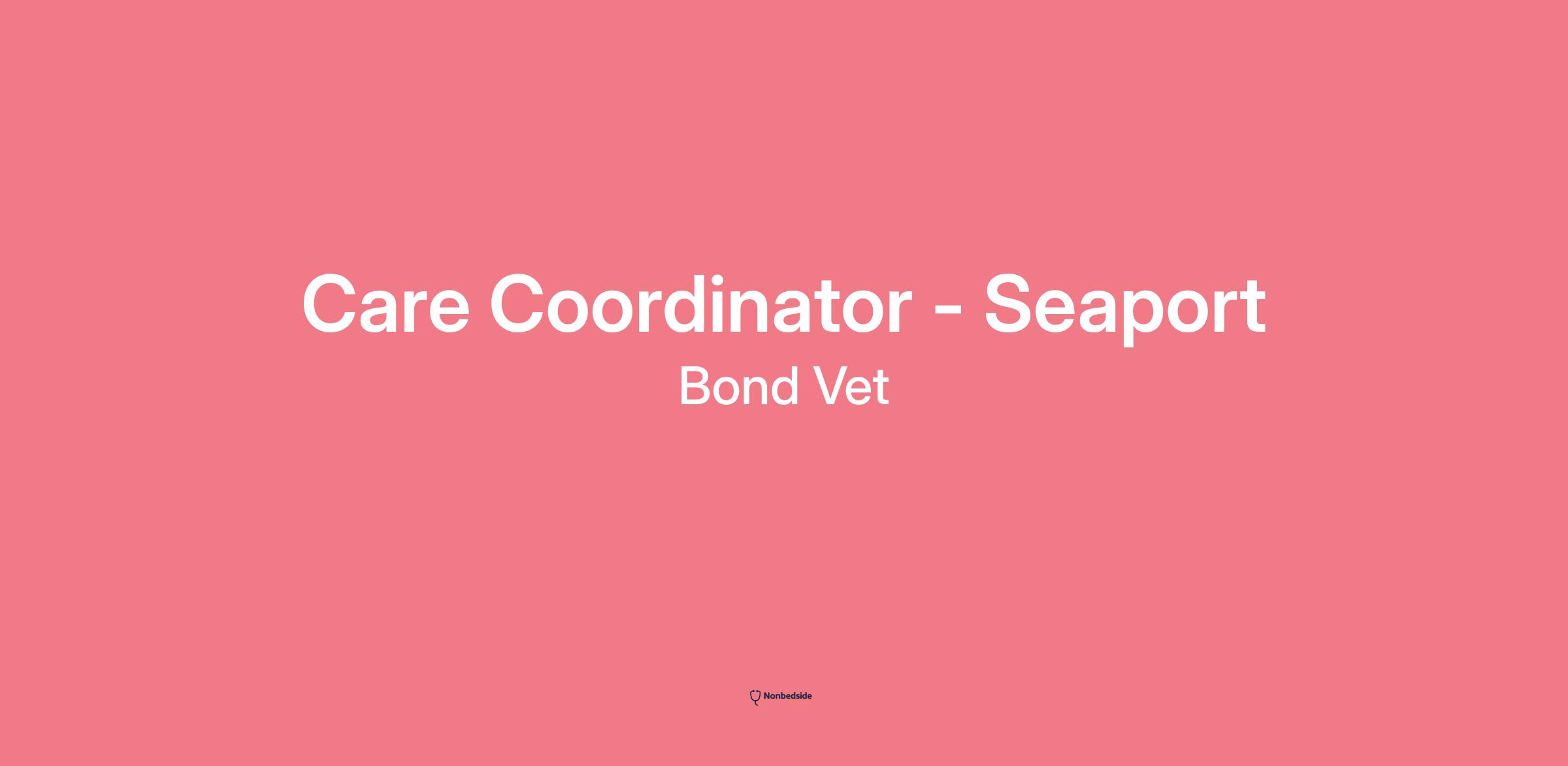 Join to apply for the Care Coordinator - Seaport role at Bond Vet Bond Vet is on a mission to strengthen the human-animal bond through better pet care. We offer primary and urgent care, so we’re there for pets when they need us most. Our clinics are designed with pets and people in mind: warm, friendly, and highly sniffable. We balance this design with a strong focus on technology, all built in-house, which means we can easily innovate our systems to improve the veterinary team, pet, and client experience.