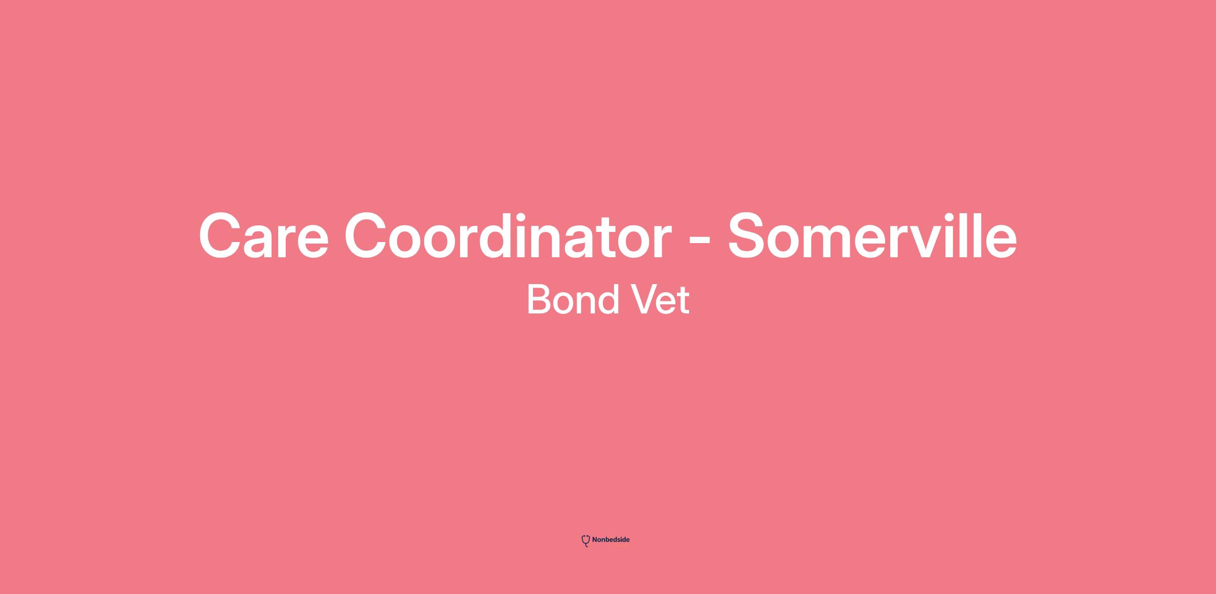 Overview Bond Vet is on a mission to strengthen the human-animal bond through better pet care. We offer primary and urgent care, designed with pets and people in mind: warm, friendly, and highly sniffable. We balance this design with a strong focus on technology, built in-house to improve the veterinary team, pet, and client experience. We are building the next generation of veterinary clinics from the ground up and are looking for a compassionate Care Coordinator to join our team.