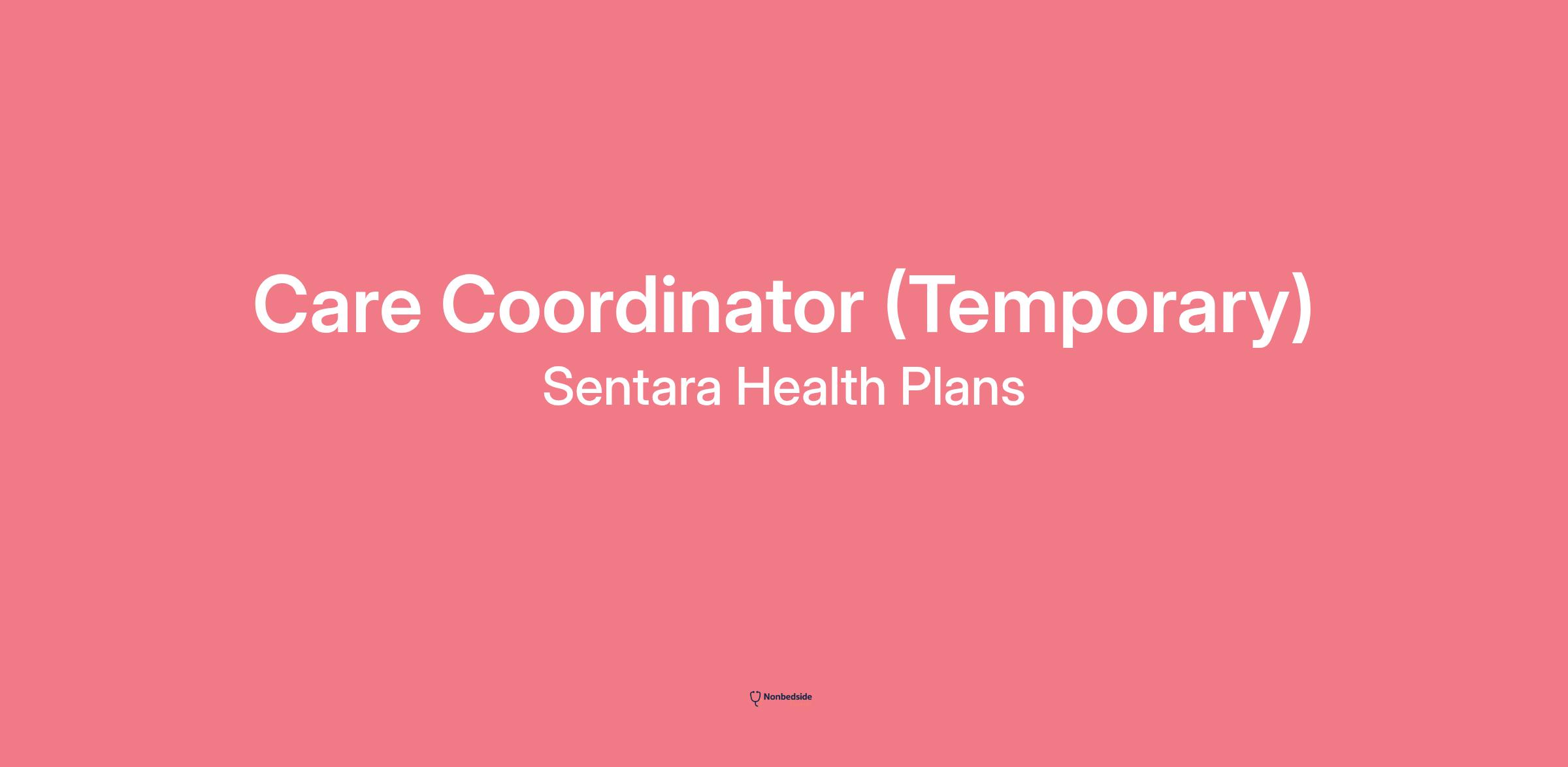 **City/State**Alexandria, VA**Work Shift**First (Days)**Overview:**Sentara Health Plans is hiring a **Temporary Care Coordinator** for the Northern/Central Virginia area!**Position Status**: This temporary position is set to last a minimum of 3 months but has the possibility of extending.**Position Location:** Hybrid in Northern/Central area. Must be able to travel 3-4 days a week for in-person assessments.**Area includes:** **Culpeper, Spotsylvania, Louisa, Rapphannock, Fredericksburg, Woodbridge, Prince Edward, Farmville, Manassas**## **This** **position requires both in person face-to-face assessments and remote telephonic assessments! Applicants must be located in Western/Roanoke area.****Standard Working Hours**: 8:00AM to 5:00PM# **Overview**Performs a variety of casework duties and provides case management services to patients, families, and designated caregivers. Must develop, participate and monitor multidisciplinary collaboration of services to patients where appropriate. Assist adult patients and their families with personal and environmental difficulties associated with medical condition up to and including at time of terminal illnesses# **Education*** Must possess a degree in Health & Human Services or one of the following related Fields: -Art Therapy -Behavioral Sciences -Child Development -Cognitive Sciences -Community Mental Health Counseling (MH, Vocational, Pastoral, etc.) -Counselor Education -Early Childhood Development -Educational Psychology -Gerontology -Healthcare Administration -Human Development -Human Services -Marriage and Family Therapy -Music Therapy -Nursing -Pharmacy -Psychiatric Rehabilitation -Psychology -Rehabilitation Counseling -Social Work -Sociology -Special Education -Speech Therapy -Therapeutic Recreation -Vocational Rehabilitation All degrees must be from schools that are listed as accredited on the U.S. Department of Education College Accreditation database found on the U.S. Department of Education website. Schools that are not listed on the database do not meet the standard as accredited. Degrees that have been obtained from schools outside the United States will be reviewed individually.# # **Certification/Licensure*** No specific certification or licensure requirements# **Experience*** 1 year of Long Term Care and Health Plans experience required* Case Management/Care Coordination experience strongly preferred* Experience with Community Health Resources strongly preferred* Experience initiating care plans and both subjectively and objectively conducting assessments**Benefits: Caring For Your Family and Your Career****•** Medical, Dental, Vision plans• Adoption, Fertility and Surrogacy Reimbursement up to $10,000• Paid Time Off and Sick Leave• Paid Parental & Family Caregiver Leave• Emergency Backup Care• Long-Term, Short-Term Disability, and Critical Illness plans• Life Insurance• 401k/403B with Employer Match• Tuition Assistance – $5,250/year and discounted educational opportunities through Guild Education• Student Debt Pay Down – $10,000• Reimbursement for certifications and free access to complete CEUs and professional development•Pet Insurance •Legal Resources Plan •Colleagues have the opportunity to earn an annual discretionary bonus if established system and employee eligibility criteria is met.**Sentara Health is an equal opportunity employer** and prides itself on the diversity and inclusiveness of its close to an almost 30,000-member workforce. Diversity, inclusion, and belonging is a guiding principle of the organization to ensure its workforce reflects the communities it serves.In support of our mission “to improve health every day,” this is a tobacco-free environment.**For positions that are available as remote work,** **Sentara Health employs associates in the following states:**Alabama, Delaware, Florida, Georgia, Idaho, Indiana, Kansas, Louisiana, Maine, Maryland, Minnesota, Nebraska, Nevada, New Hampshire, North Carolina, North Dakota, Ohio, Oklahoma, Pennsylvania, South Carolina, South Dakota, Tennessee, Texas, Utah, Virginia, Washington, West Virginia, Wisconsin, and Wyoming.