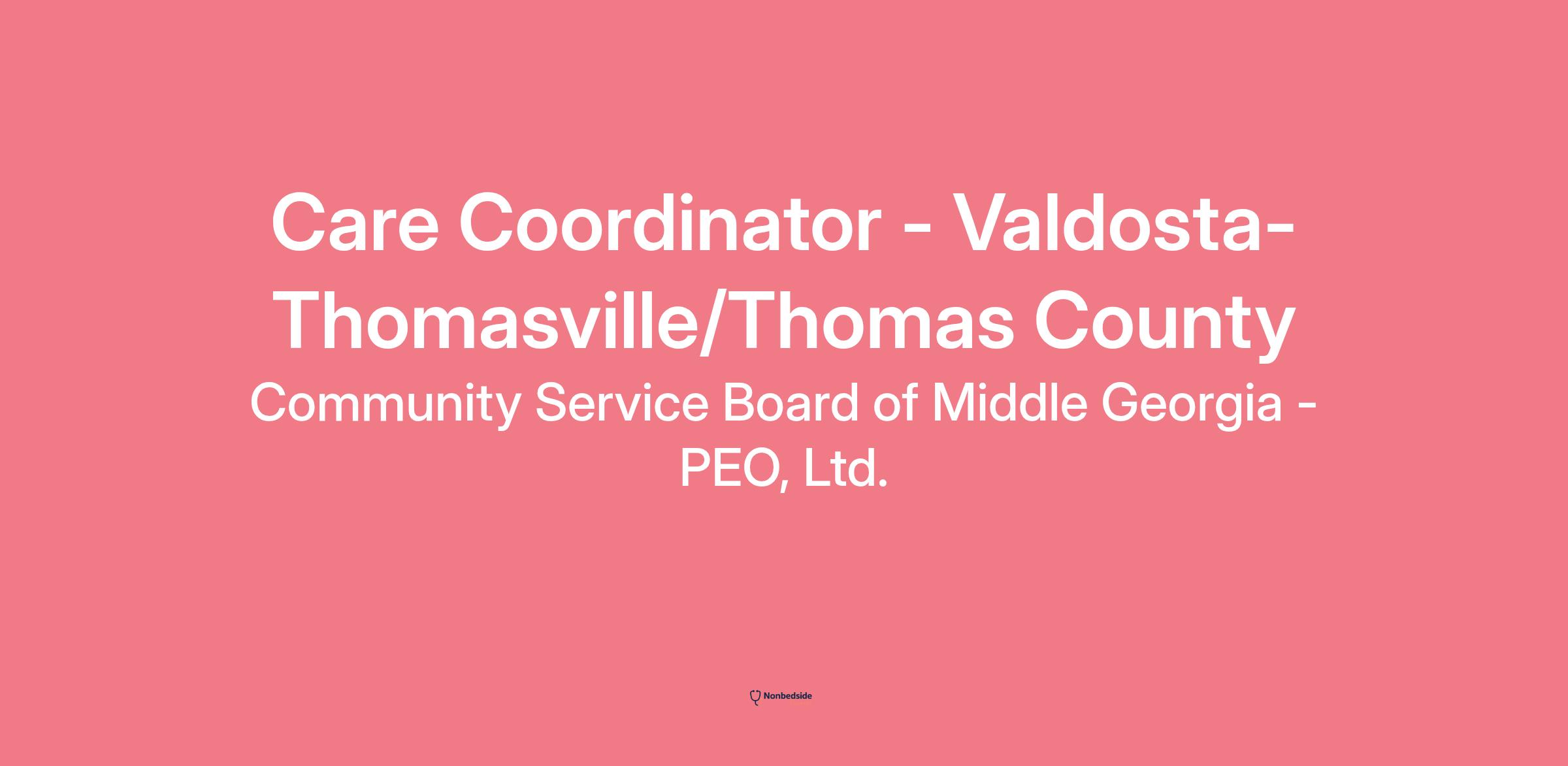 The Community Service Board of Middle Georgia's HOPE IC3 department is seeking a qualified individual to serve as a Care Coordinator for the Intensive Customized Care Coordination (IC3) Program! Our Care Coordinators serve youth and families in need of customized, coordinated care to discover the underlying needs of the family by building upon the strengths of the family and their support. The Care Coordinator will also be responsible for engaging with assigned families and their formal and informal support to determine all needs and strengths. Care Coordinators use learned knowledge to create a team to produce innovative strategies to address the identified underlying needs of the individuals served. The Care Coordinator will work with all involved to ensure this team moves in the same direction, everyone stays informed and monitors needs and progress.