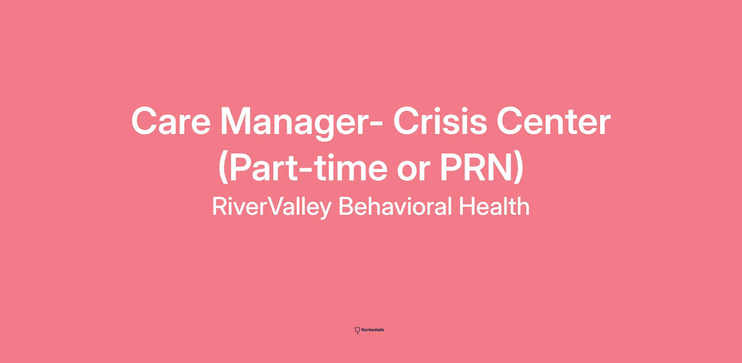 Care Manager- Crisis Center (Part-time or PRN) Crisis Team members are responsible for providing immediate intervention and evaluation, support towards crisis stabilization, navigation to community partner agencies, harm reduction resources, therapeutic services and resources, as well as next day follow-up and appropriate transition/discharge.