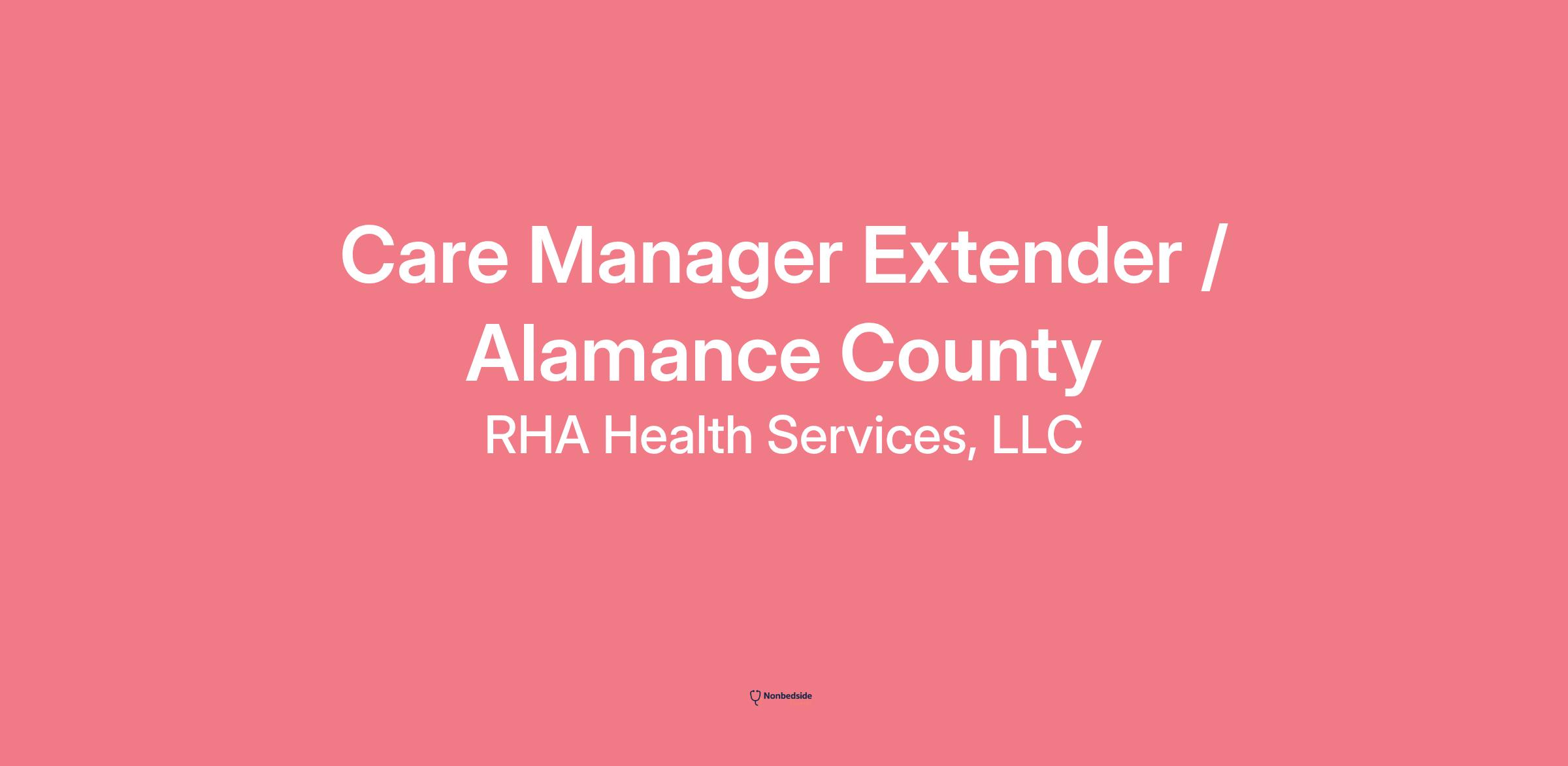 **We are hiring for:**Care Manager Extender / Alamance County**Type:**RegularIf you are a positive and personable individual looking for a satisfying and fun opportunity to make a real difference in the lives of people with intellectual, developmental disabilities, and people facing mental health, and substance use challenges, join our team at RHA Health Services! Provides whole person, integrated care management in service sites, homes and communities through face to face and other interactions and through the work of integrated care teams. Promotes whole person care directed at better health outcomes and addressing all needs spanning physical and behavioral health, I/DD, pharmacy, and unmet health related resources. Ensures sustained high quality of care and services to persons with mental health, substance use and/or developmental disabilities. Complies with company, state and federal policy.**Pay:** $15.00-$22.00**County:** Alamance County, Parson, Chatham County**Required Education/Experience:****Education**- High School Diploma or equivalent; Must be at least 18 years of age**Experience**- Must meet at least one of the following requirements:* o Be a person with lived experience with an I/DD or a TBI with demonstrated knowledge of and direct personal experience navigating the North Carolina Medicaid delivery system.\** OR* o Be a person with lived experience with a behavioral health condition and a Certified Peer Support Specialists.* OR* o Be a parent or guardian of an individual with an I/DD or a TBI or a behavioral health condition and has at least two years of direct experience providing care for and navigating the Medicaid delivery system on behalf of that individual (parent/guardian cannot serve as an extender for their family member).\** OR* Have two (2) years of paid experience performing the following types of functions, with at least one year of paid experience working directly with the Tailored Care Management eligible population:* Performing general outreach, engagement, and follow-up with members* Coordinating services/appointments (e.g., appointment/wellness reminders, arranging transportation)* Engaging in health promotion activities (as defined in the Tailored Care Management Provider Manual) and knowledge sharing* Sharing information with the care manager and other members of the care team on the member’s circumstances* Providing and tracking referrals and providing information and assistance in obtaining and maintaining community-based resources and social support services* Participating in case conferences* Support the care manager in assessing and addressing unmet health-related resource needs**License:*** Must have Valid Driver's License**Essential Job Related Responsibilities*** **Care Management Service Delivery** – Performs general outreach, engagement, and follow-up with members; coordinates services/appointments (e.g., appointment/wellness reminders, arranging transportation); Engages in health promotion activities (as defined in the Tailored Care Management Provider Manual) and knowledge sharing; shares information with the care manager and other members of the care team on the member’s circumstances; Provides and tracks referrals and providing information and assistance in obtaining and maintaining community-based resources and social support services; Participates in case conferences; supports the care manager in assessing and addressing unmet health-related resource needs. Implements workflows, policies and procedures, and documentation standards that promote whole person care.. Maintains a positive and professional image in the work setting and community. Follows policies and procedures to ensure accountability of service delivery.* **Best Practices –** Demonstrates a passion for positive change by continuously improving and defining innovative care management interventions. Stays up to date with current best practices and keeps the team continuously informed about best practice innovations.* **Cross-functional Collaboration -** Collaborates cross-functionally with other Integrated Care Team members, community organizations and RHA departments to ensure success of Care Management implementation.* **Person-Centered Approach** – Maintains a person-centered philosophy focusing on an individual’s strengths, needs, and preferences that promote health, wellness, and safety. Fosters a person-centered culture with Care Management Teams to optimize individual education around self-management, disease management, and integrated healthcare planning.* **Quality Assurance and Use Of Data -** Implements the strategic use of data to support delivery of effective, integrated, and well-coordinated care management services.. Ensures individual data sharing and storage consistent with state and company policies.* **Maintains a Safe and Healthy Environment-** Implements all organization health and safety policies and procedures.* **Financial Performance** - responsible for documenting services provided in a timely manner in order to be appropriately accounted for reimbursement purposes* **Ensures proactive and effective communication -** Establishes and maintains frequent and regular communication with persons supported, family members, other team members and colleagues. Fosters open communication and feedback. Helps maintain focus on care planning goals and outcomes. Establishes and maintains strong external relationships, to include providers, community organizations, and Clinically Integrated Networks (CIN).* **Ethics & Compliance –** Supports and participates in an ethical culture in conjunction with the RHA Code of Conduct and Ethics and Compliance Program, emphasizing confidentiality and no retaliation policies. Directs the confidential and immediate investigation into allegations of abuse, neglect, exploitation, theft, fraud, waste, misconduct, and violations of ethics and compliance practices according to company policy. Ensures protections of indiv