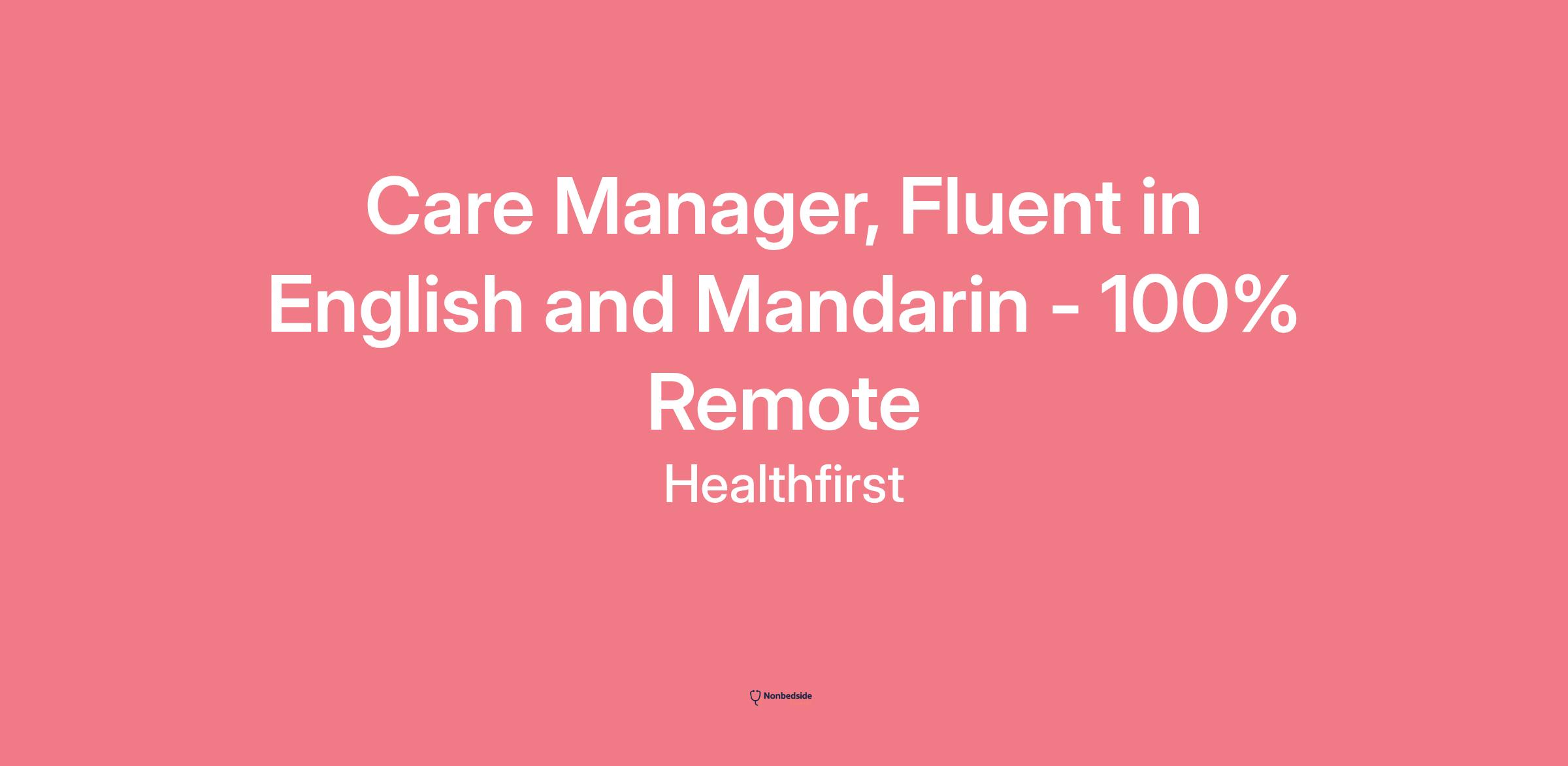 Care Manager, Fluent in English and Mandarin - 100% Remote The Care Manager plans and manages behavioral and/or physical care with members and works collaboratively with them, their supports, providers, and health care team members. The Care Manager is responsible for applying care management principles when engaging members and addressing coordination of their health care services to provide an excellent member experience, address barriers, and improve their health outcomes.
