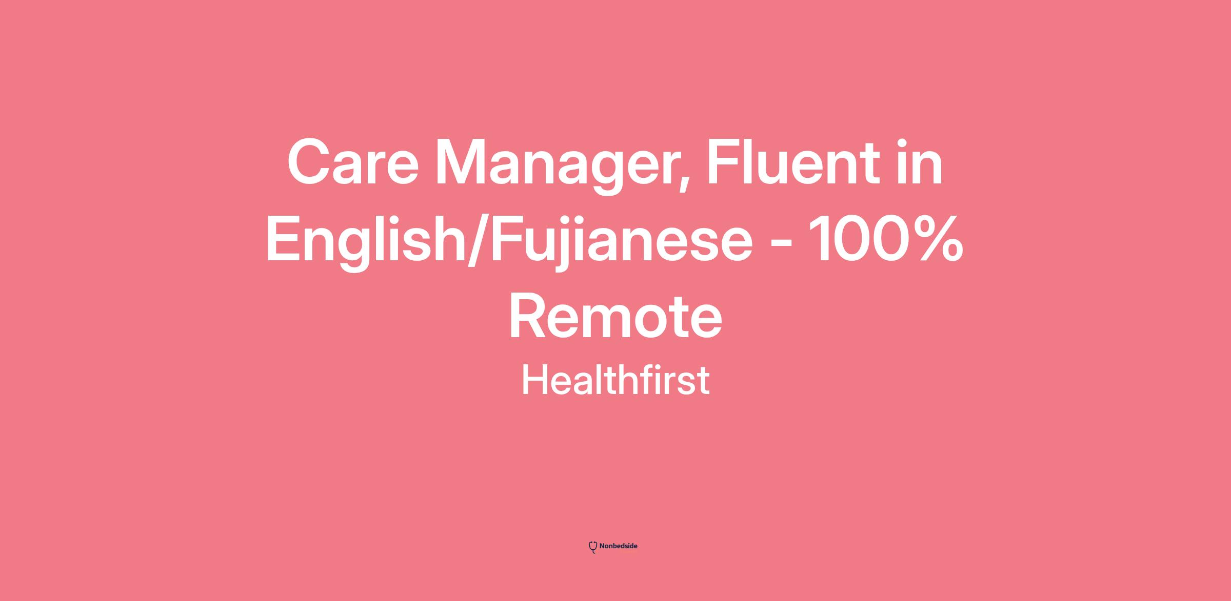 Care Manager, Fluent in English/Fujianese - 100% Remote