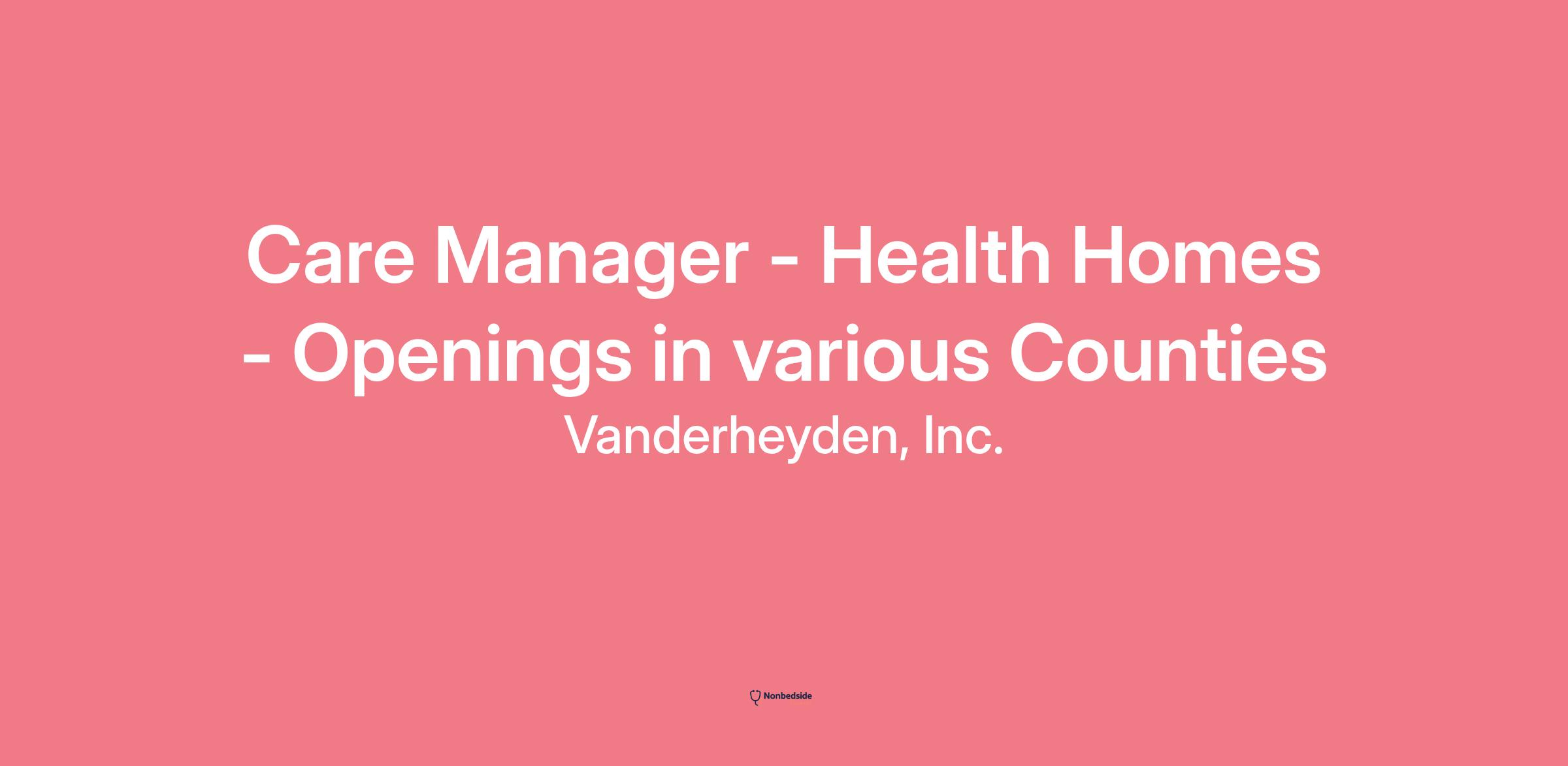 Care Manager - Health Homes - Openings in various Counties Join to apply for the Care Manager - Health Homes - Openings in various Counties role at Vanderheyden, Inc.