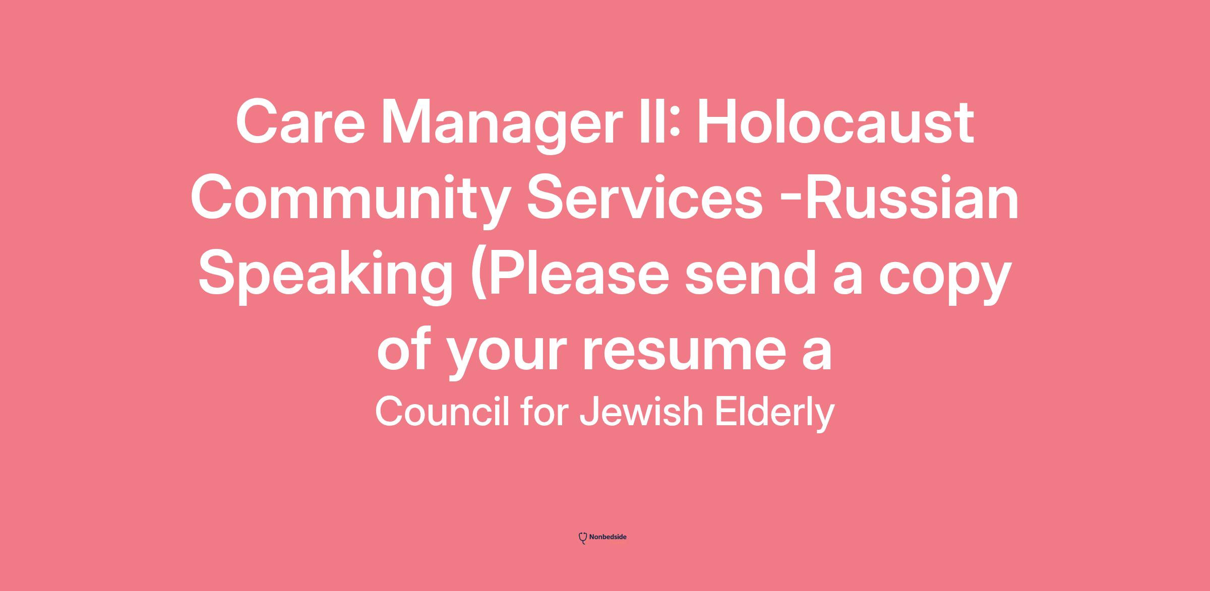 The Holocaust Community Services (HCS) Care Manager II – Russian Speaking position offers a unique opportunity for a dedicated social services professional to work directly with Holocaust Survivors providing financial assistance, case management, and socialization opportunities. Care Managers support survivor clients to maintain independence and dignity as they age, learn and promote awareness about the experiences they endured during the Holocaust, and help address the needs they have today as a result of those experiences.