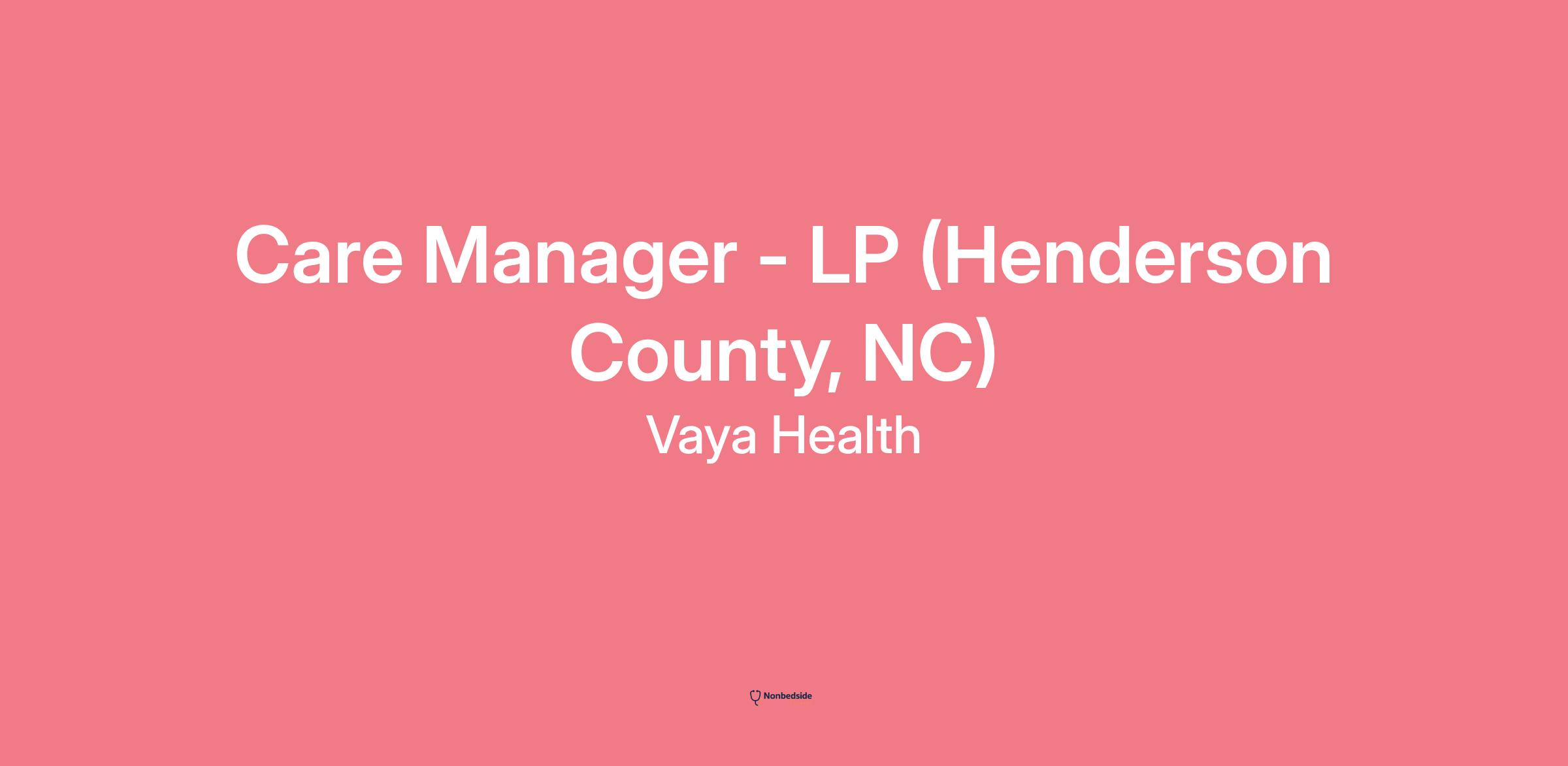 The Care Manager Licensed Professional ("Care Manager - LP") is responsible for providing proactive intervention and coordination of care to eligible Vaya Health members and recipients ("members") to ensure that these individuals receive appropriate assessment and services. The Care Manager - LP works with the member and care team to identify and alleviate inappropriate levels of care or care gaps through assessment, multidisciplinary team care planning, linkage and/or coordination of services needed by the member across the MH, SU, intellectual/ developmental disability ("I/DD"), traumatic brain injury ("TBI") physical health, pharmacy, long-term services and supports ("LTSS") and unmet health-related resource needs networks. Care Manager - LP supports and may provide clinical transition planning assistance to state, and community hospitals and residential facilities and track individuals discharged from facility settings to ensure they follow up with aftercare services and receive needed assistance to prevent further hospitalization. This is a mobile position with work done in a variety of locations, including members' home communities. The Care Manager - LP also works with other Vaya staff, members, relatives, caregivers/ natural supports, providers, and community stakeholders. The Care Manager - LP also utilizes licensed clinical knowledge and skills to assess needs, inform care planning development, provide clinical consultation, and offer recommendations for appropriate care.