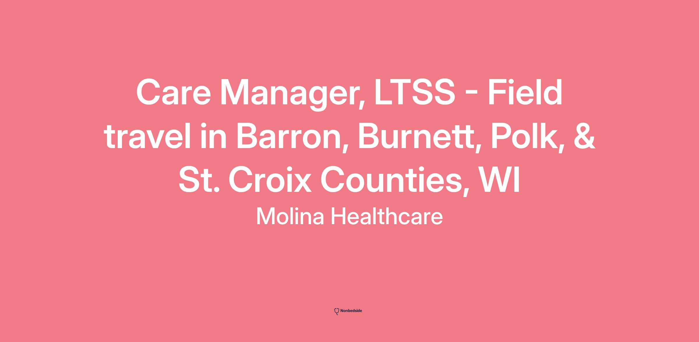 Care Manager, LTSS - Field travel in Eau Claire & Chippewa Counties, WI Join to apply for the Care Manager, LTSS - Field travel in Eau Claire & Chippewa Counties, WI role at Molina Healthcare