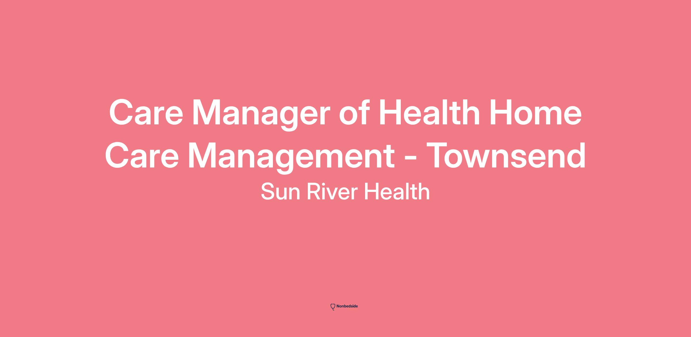 Sun River Health provides the highest quality of comprehensive primary, preventative and behavioral health services to all who see it, regardless of insurance status and ability to pay, especially for the underserved and vulnerable. Sun River Health is a Federally Qualified, Non‑Profit Health Center serving communities in Suffolk, Rockland, Orange, Dutchess, Ulster, Sullivan, Columbia and Westchester County. Sun River Health is currently seeking a Full‑time Care Manager to join our team in our Townsend Health Center.