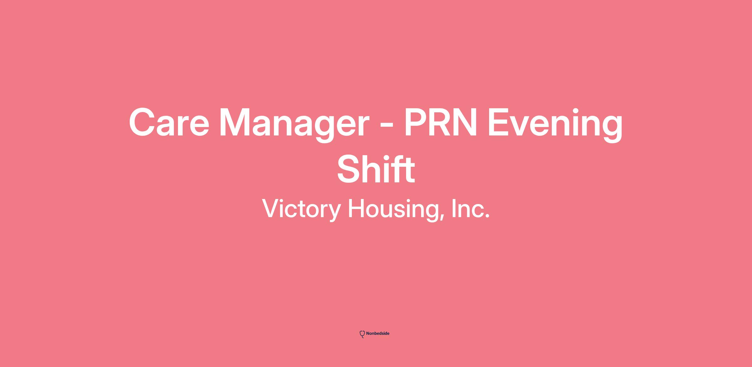 Join to apply for the Care Manager - PRN Evening Shift role at Victory Housing, Inc.