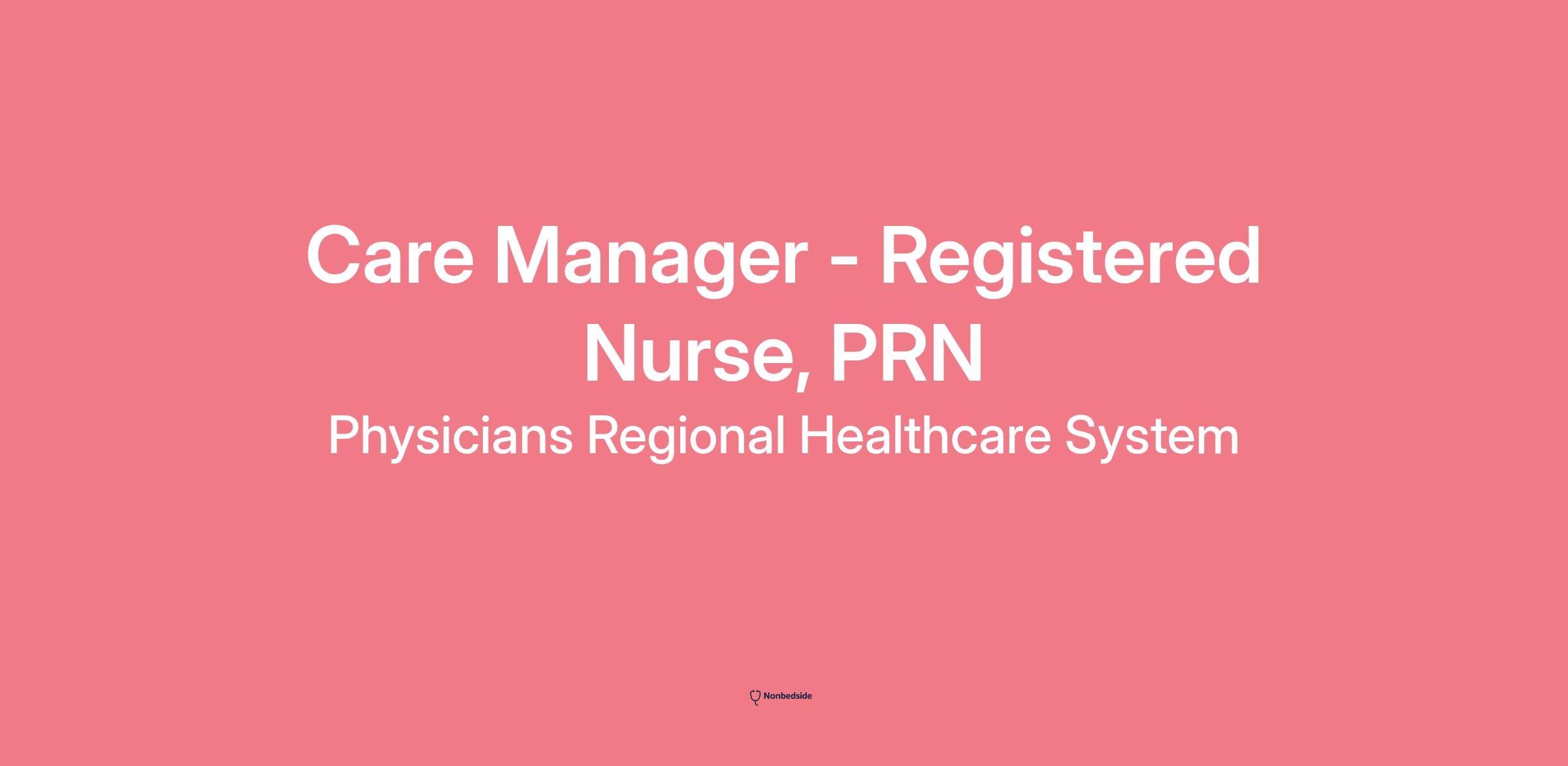 Join to apply for the Care Manager - Registered Nurse, PRN role at Physicians Regional Healthcare System