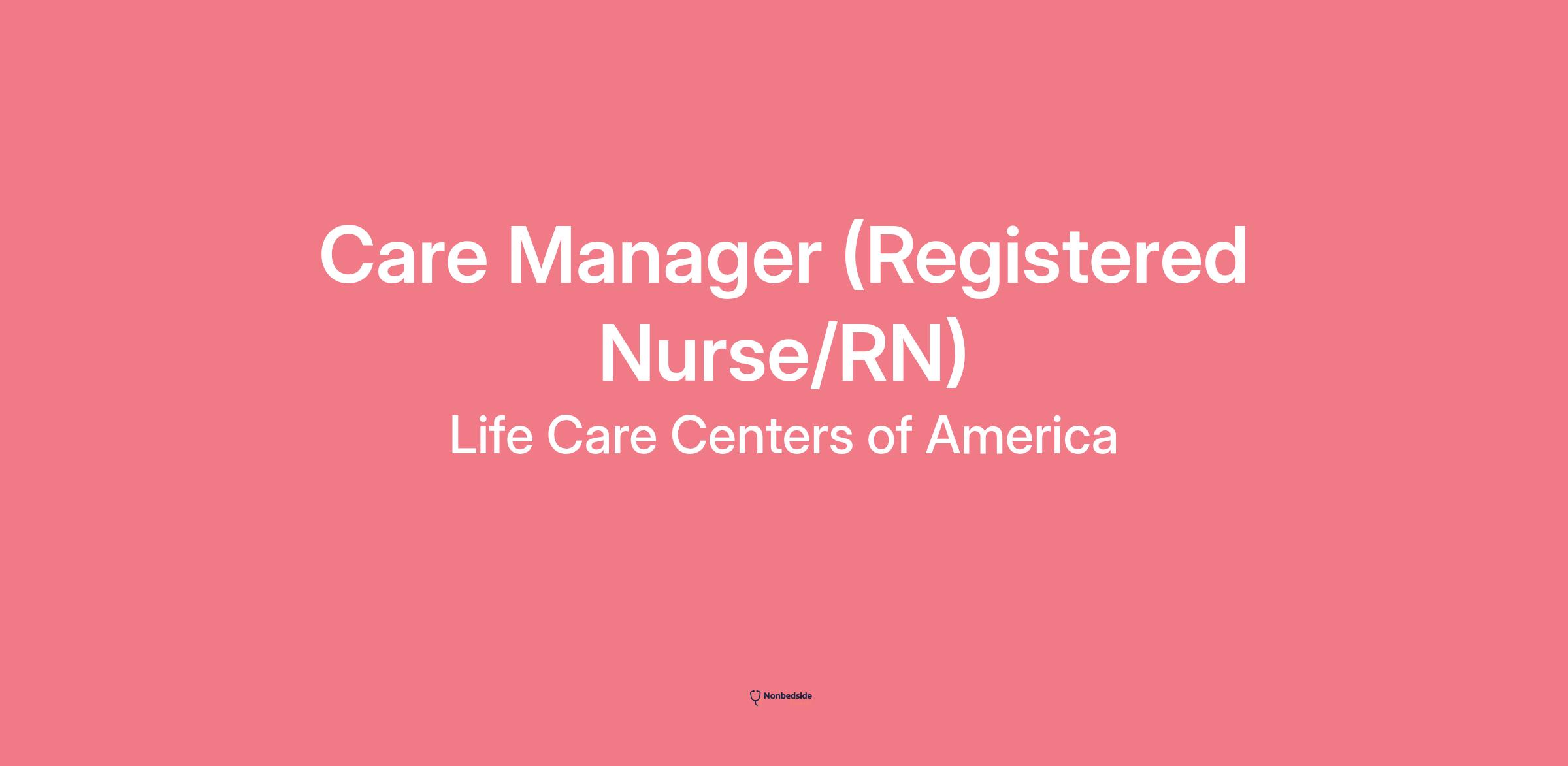 Join to apply for the Care Manager (Registered Nurse/RN) role at Life Care Centers of America .