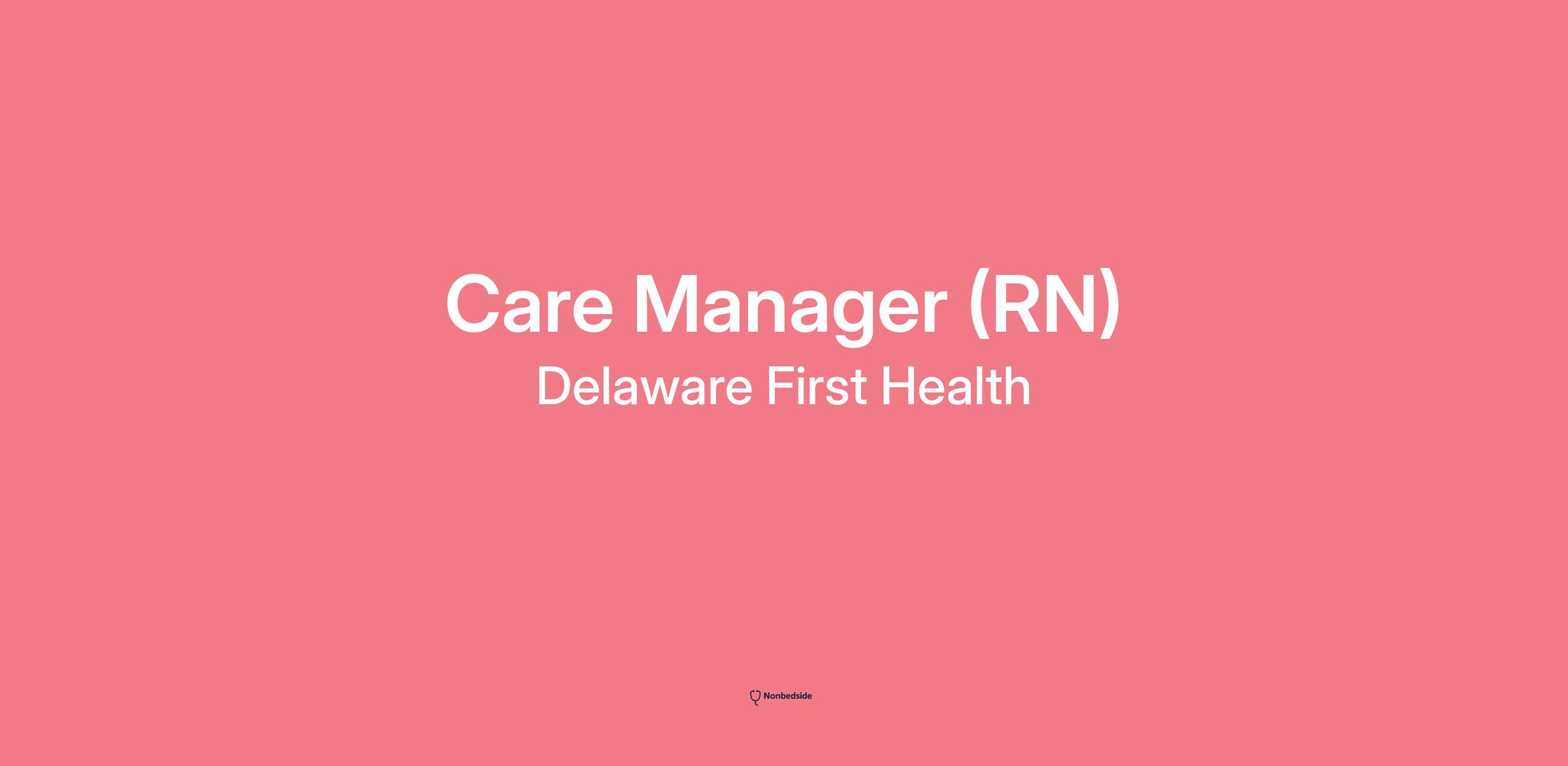 Join to apply for the Care Manager (RN) role at Delaware First Health .