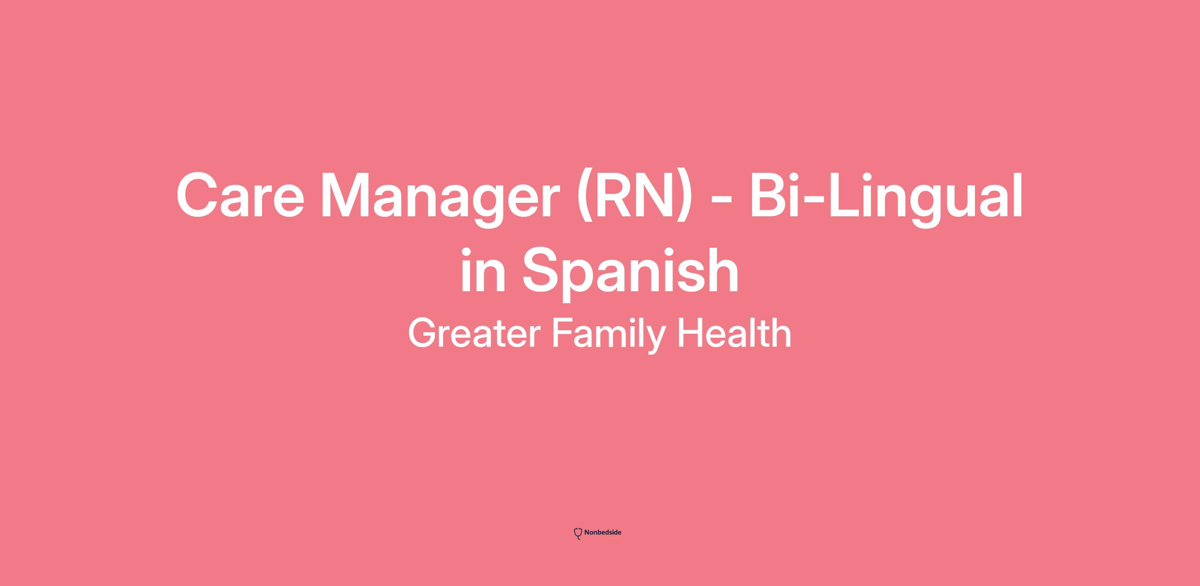 The primary purpose of this position is to facilitate coordination of care and care management for all Greater Family Health third-party managed care patients.
