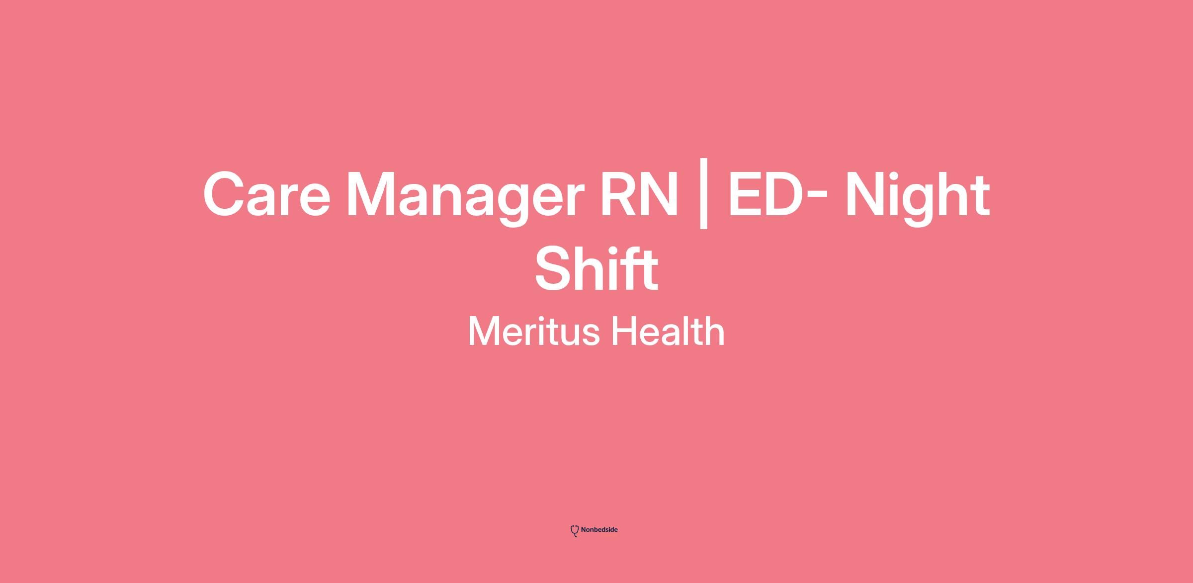 At Meritus Health, we believe that care doesn't end at dischargeit evolves. As a Care Manager RN, you'll be a key driver of clinical coordination and patient advocacy, guiding individuals through their acute care journey and beyond. Working within an interdisciplinary team, you'll assess, plan, and implement care strategies that promote recovery, reduce readmissions, and ensure continuity across the healthcare spectrum. Your expertise in evidence-based practices, regulatory standards, and community resources will help shape care plans that are both clinically sound and deeply personalized. This role is ideal for a nurse who thrives in a collaborative environment and is passionate about improving outcomes through strategic care management.
