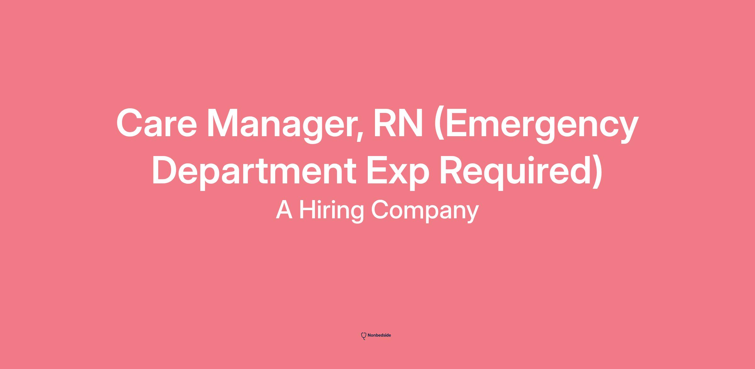 Care Manager, RN (Emergency Department Exp Required) Care Manager, RN (Emergency Department Exp Required) 1 day ago Be among the first 25 applicants