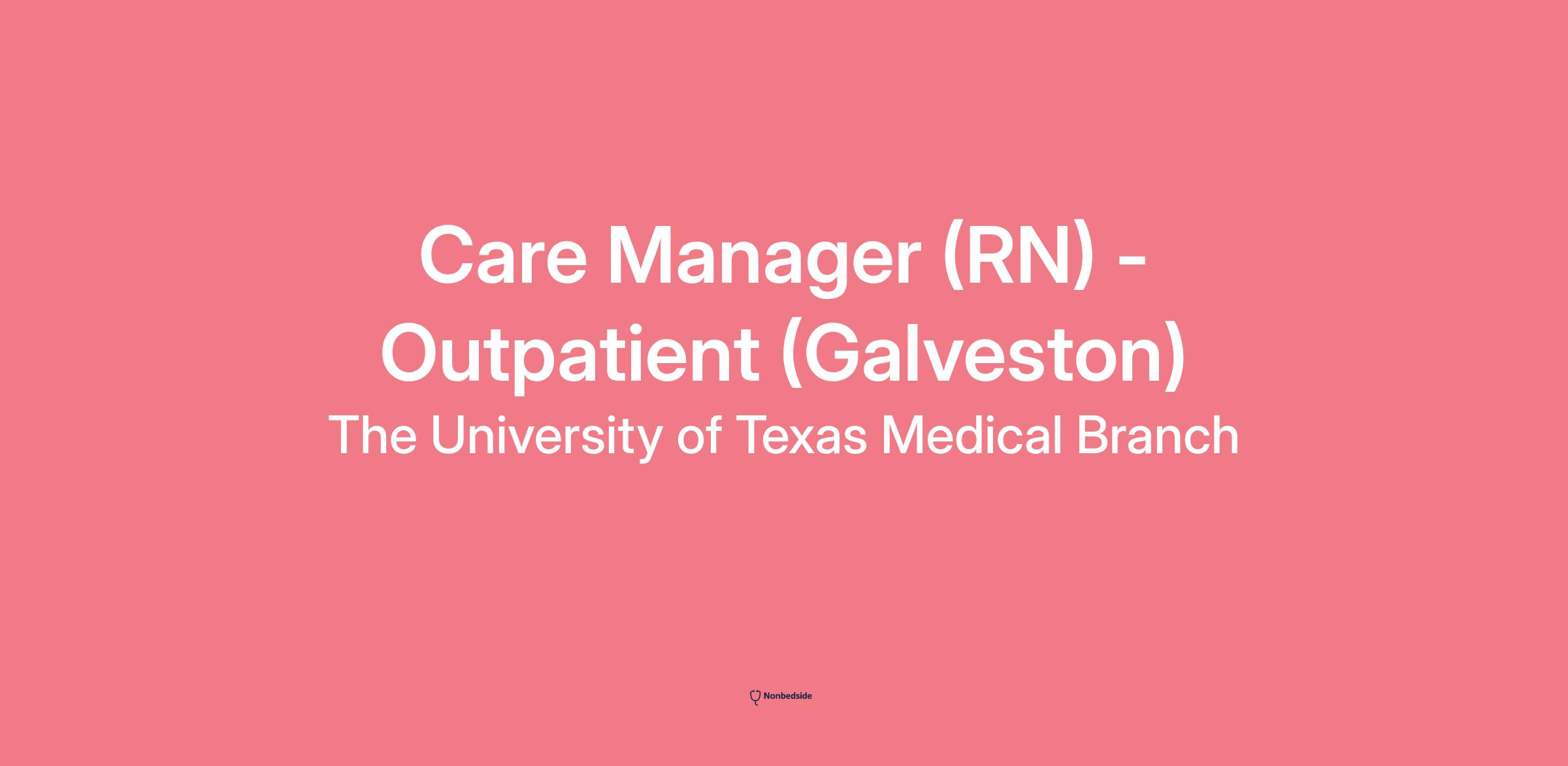 Overview Join to apply for the Care Manager (RN) - Outpatient role at The University of Texas Medical Branch .