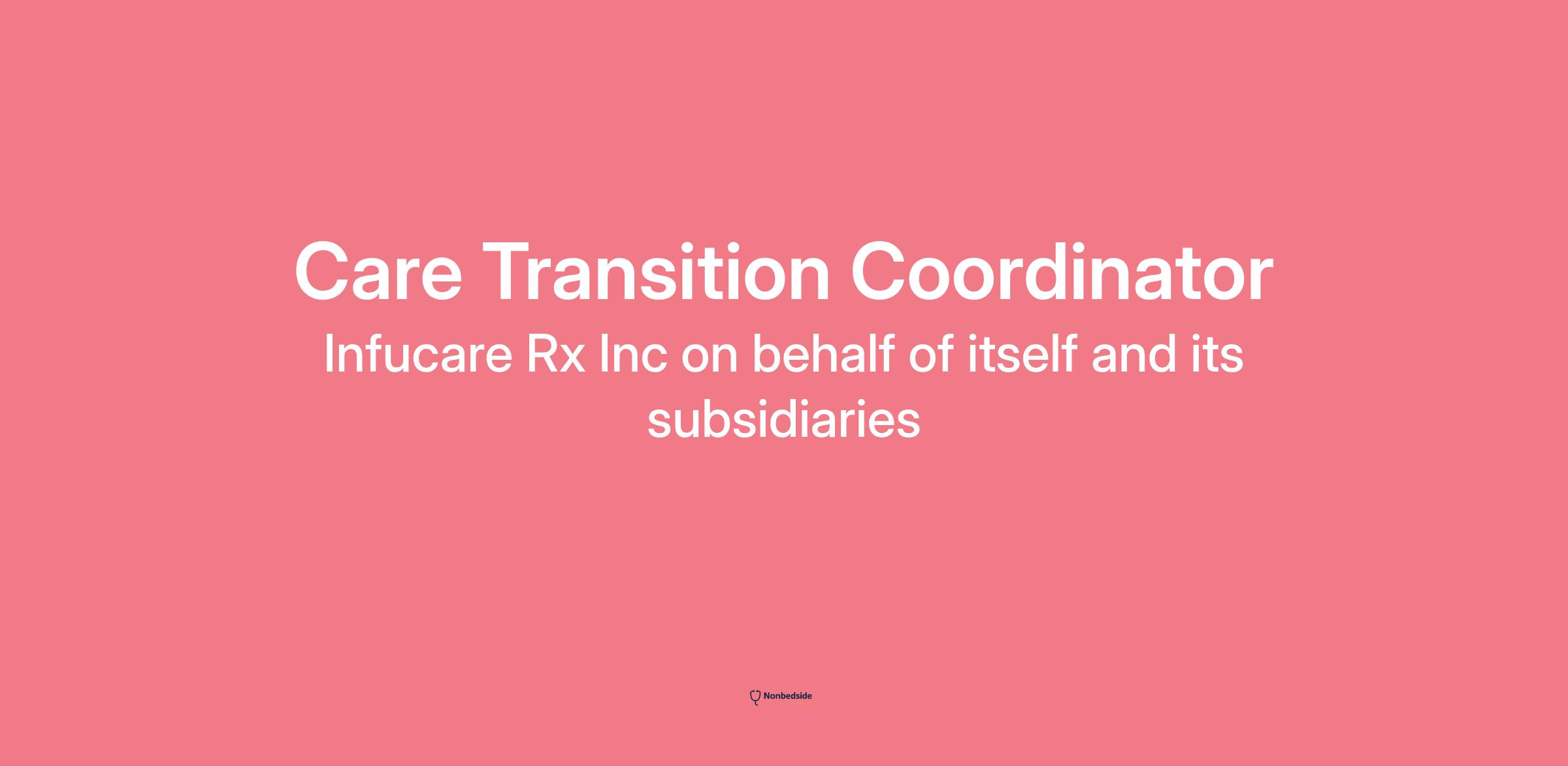 As a Care Transition Coordinator, you play a key role in helping patients safely and seamlessly transition from hospital care to home infusion therapy. This position requires excellent relationship-building, patient education, and care coordination skills. The Care Transition Coordinator works closely with hospital discharge planners, physicians, and the InfuCare Rx team to ensure patients receive timely, appropriate, and high-quality infusion care at home. This role reports to the Area Sales Director and requires some travel to hospitals, clinics, and community partners.
