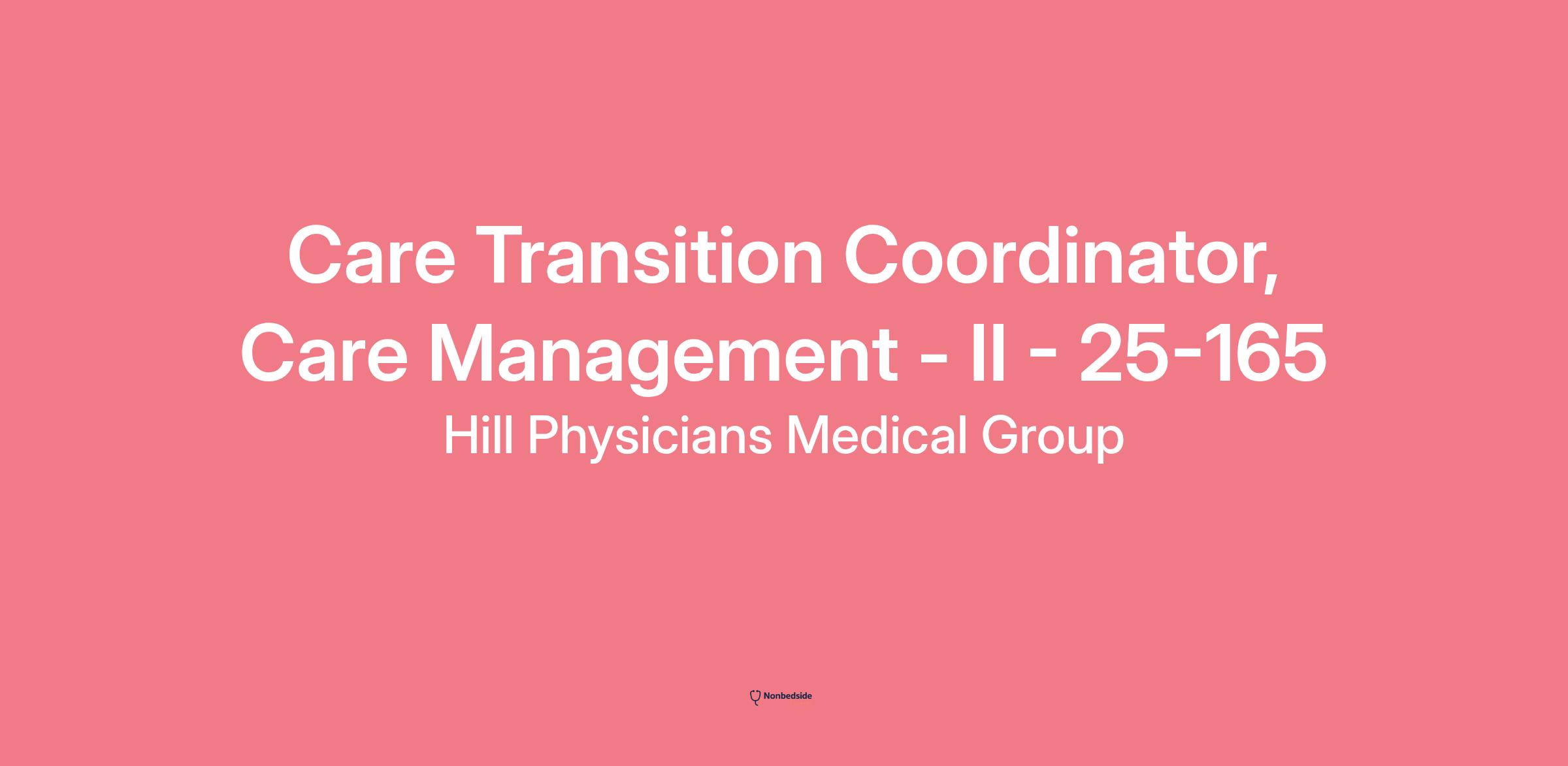 Join to apply for the Care Transition Coordinator, Care Management - II - 25-165 role at Hill Physicians Medical Group