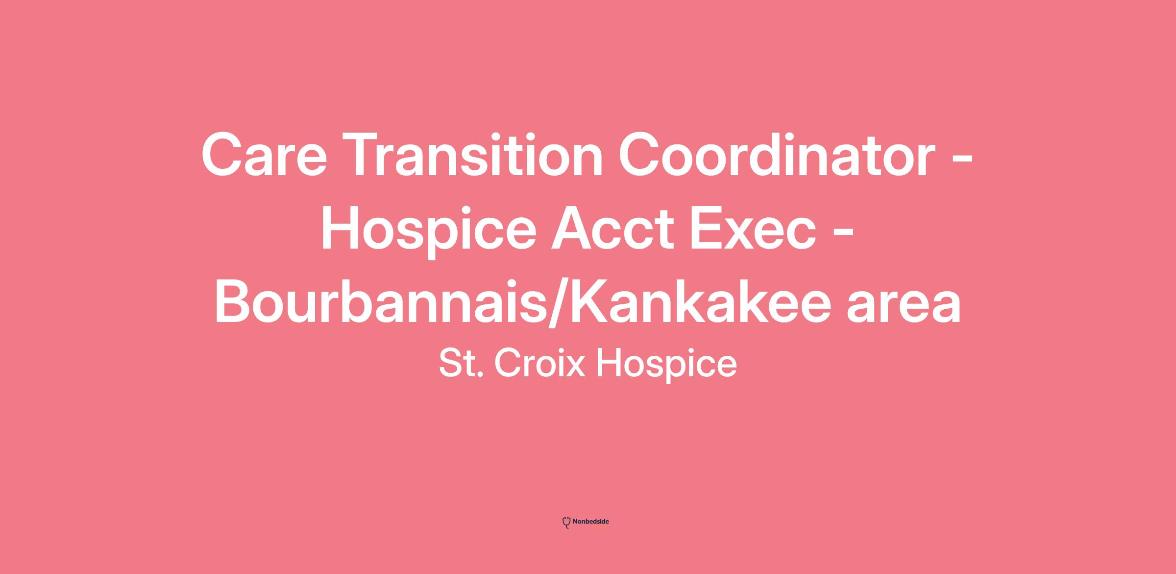 Join to apply for the Care Transition Coordinator - Hospice Acct Exec - Bourbannais/Kankakee area role at St. Croix Hospice