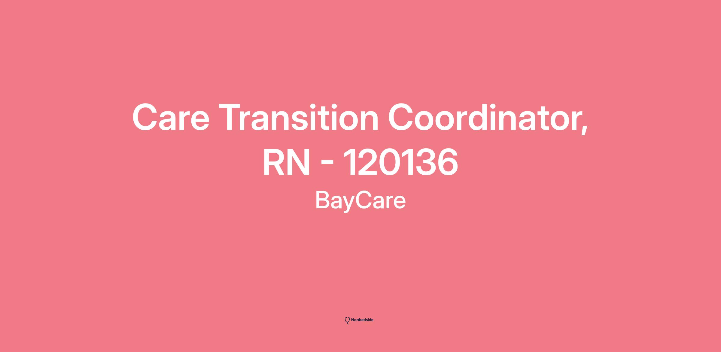 BayCare is currently in search of our newest Care Transition Coordinator, RN with BayCare Homecare who is passionate about providing outstanding customer service to our home care community. We are looking for an individual seeking a career opportunity with one of the largest employers within the Tampa Bay area.