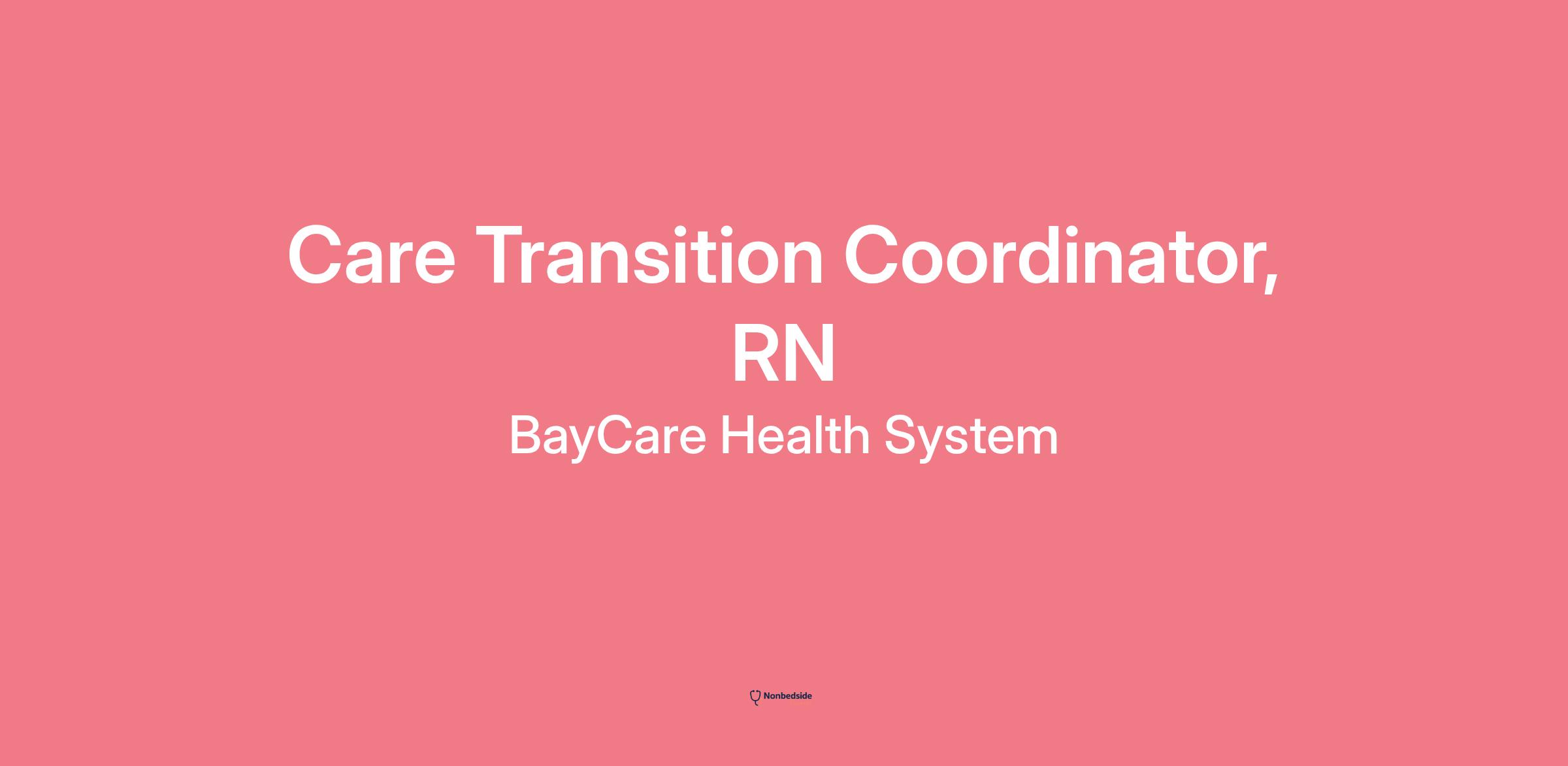 BayCare is currently in search of our newest Care Transition Coordinator, RN with BayCare Homecare who is passionate about providing outstanding customer service to our home care community. We are looking for an individual seeking a career opportunity with one of the largest employers within the Tampa Bay area.