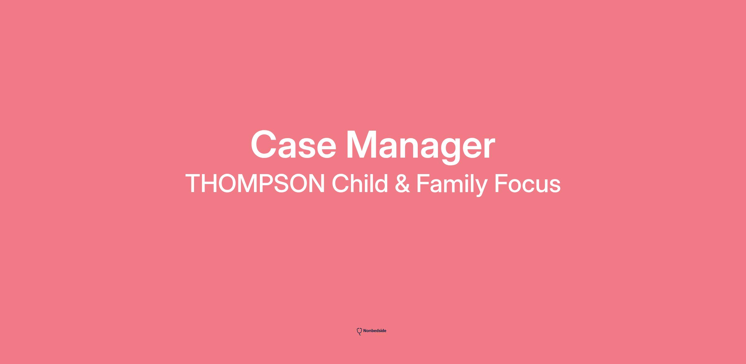 Overview Join to apply for the Case Manager role at THOMPSON Child & Family Focus . Thompson is a trauma-informed, evidence-based organization serving ages 0-18 and their families, with a continuum of care across early childhood, family stability, and mental health.
