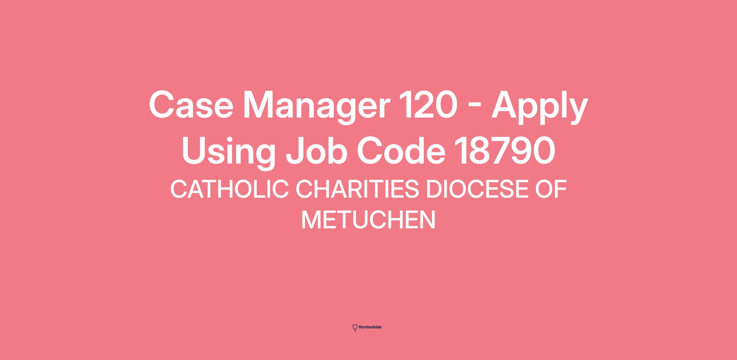 Job Overview Catholic Charities, Diocese of Metuchen (CCDOM), a non-profit, social services agency, is seeking a Case Manager 120 (Employment Specialist) to join their team in Perth Amboy, NJ.