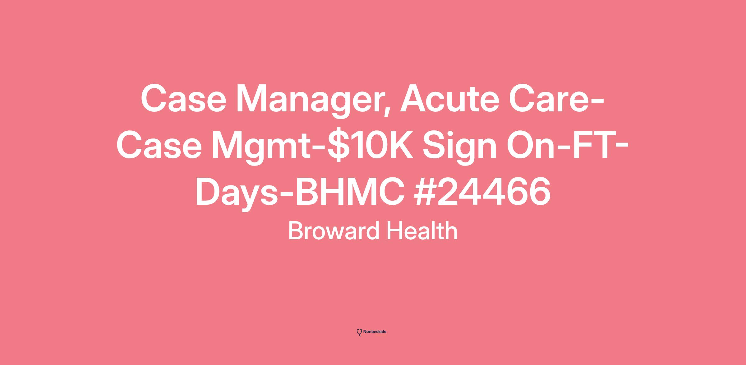 Case Manager, Acute Care-Case Mgmt-$10K Sign On-FT-Days-BHMC #24466