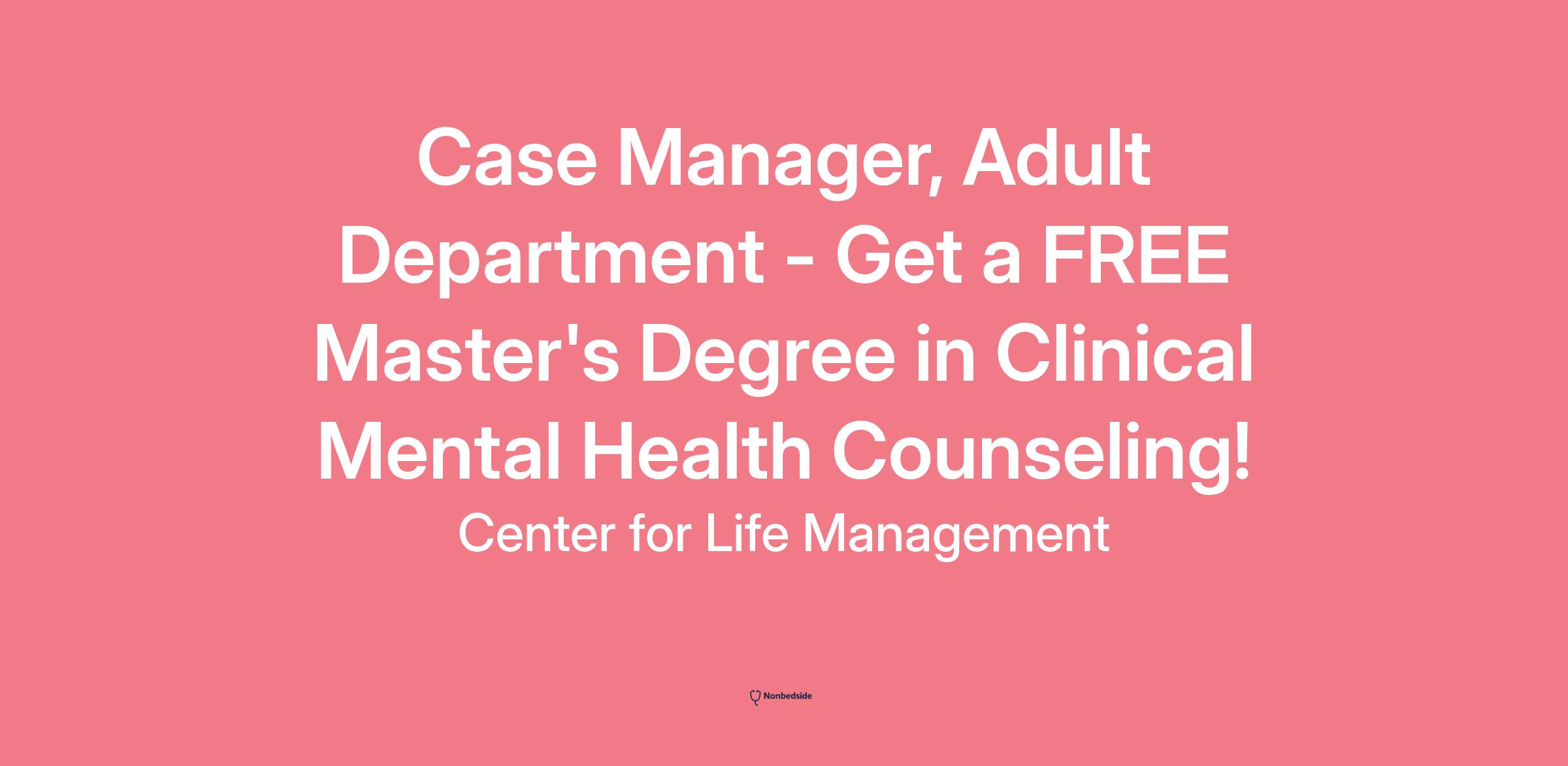 Center for Life Management (CLM) provides the area's most comprehensive array of outpatient mental health services for adults and elders. Our multi-disciplined treatment team works with individuals ages 18+ who experience severe and persistent mental illness and/or co-occurring substance use disorders. The Adult Case Manager provides care planning, resource identification, benefit coordination, service monitoring, and community-based support to assist clients with improving symptoms and behaviors that otherwise interfere with daily functioning and wellness goals. This is a full time, 40 hour per week position.