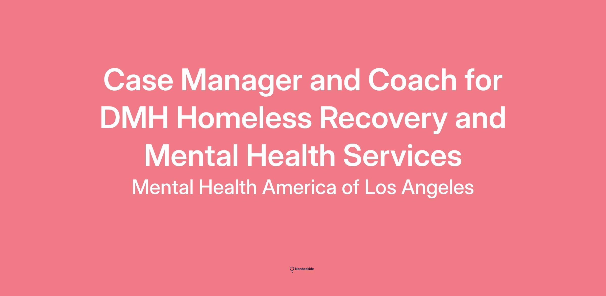 Case Manager and Coach for DMH Homeless Recovery and Mental Health Services