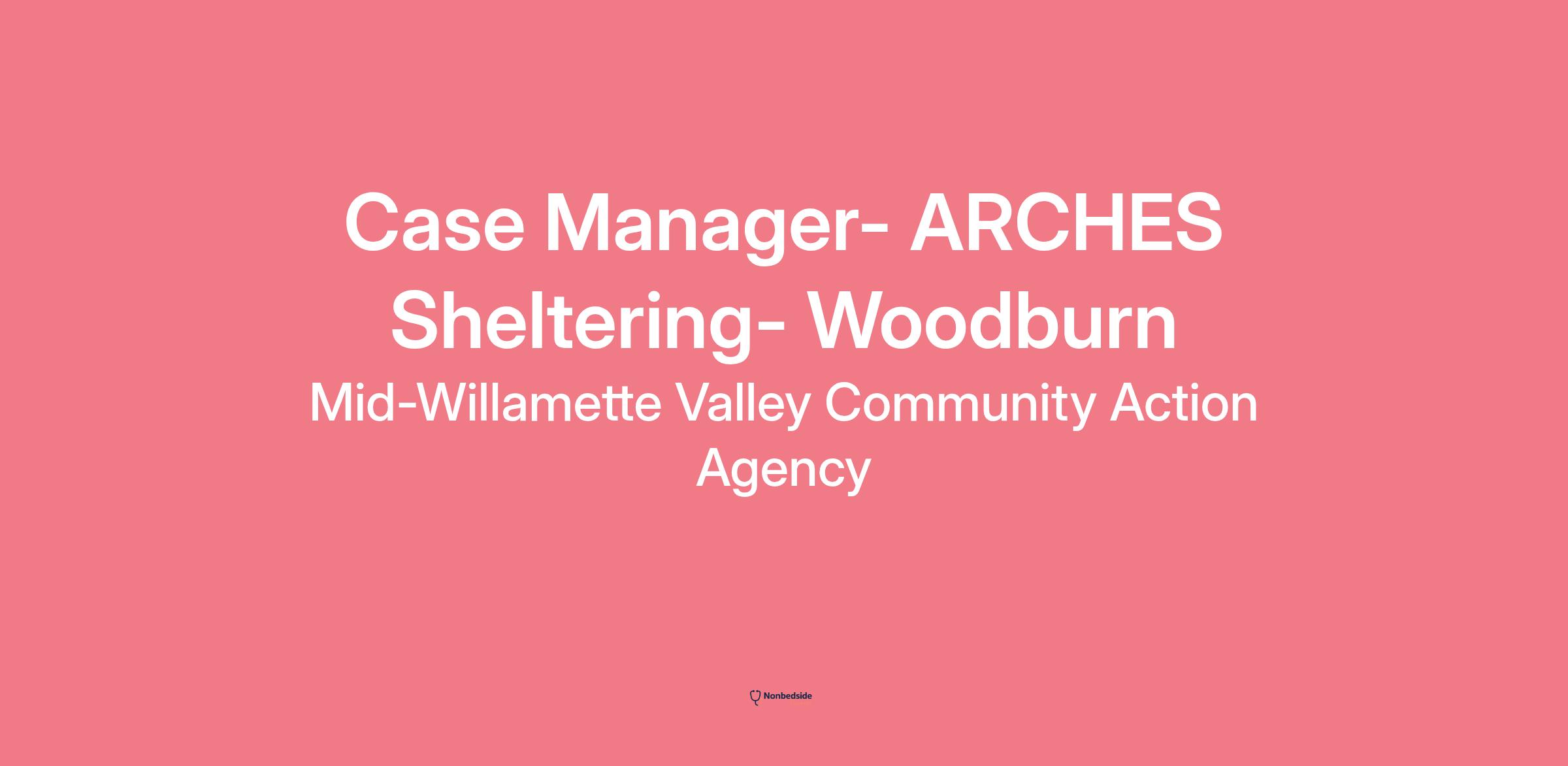 Overview Join our ARCHES Program! The Sheltering Case Manager will work with moderate to high needs clients to support and guide them through an extended level of assistance in order to remove barriers and facilitate stable housing. The person in this position will perform eligibility screening, program enrollment, participant follow-ups, process required paperwork, data entry, and other general program supports. This position will directly align with the Housing First initiatives of the ARCHES Project. The position is renewable annually based on the continuation of project funding.